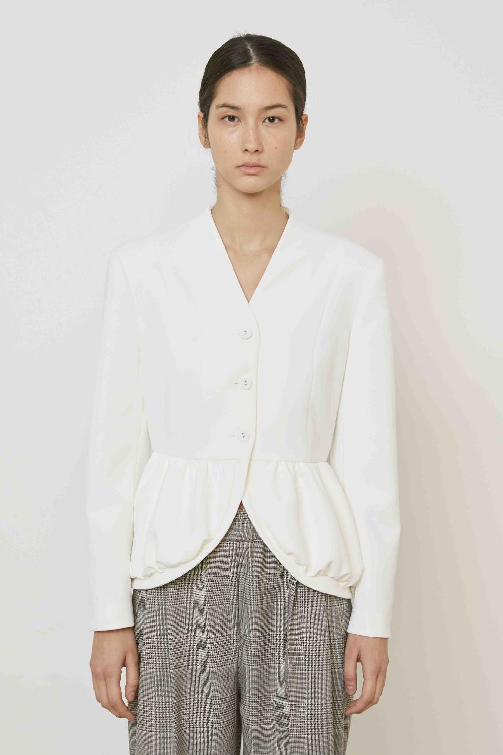 BLAZER FODERATO SCOLLATO A "V" A MANICHE LUNGHE CON SPACCHI AL FONDO E BALZA ARRICCIATA.CHIUSURA FRONTALE CON BOTTONI