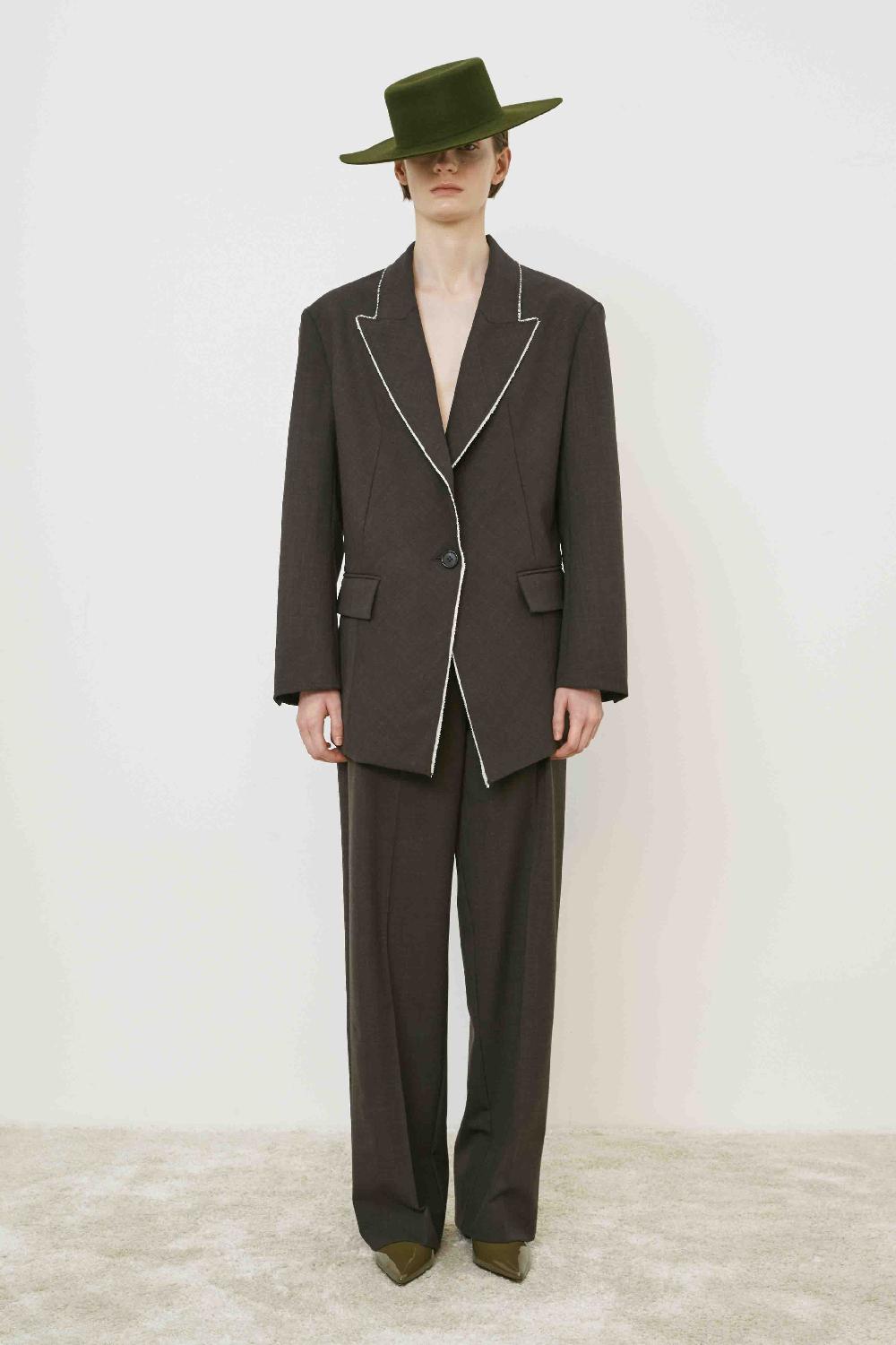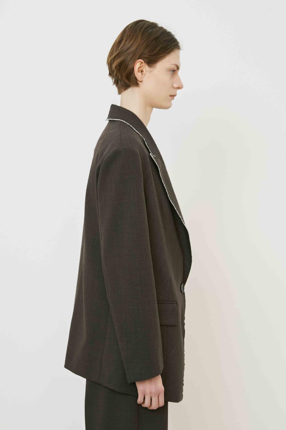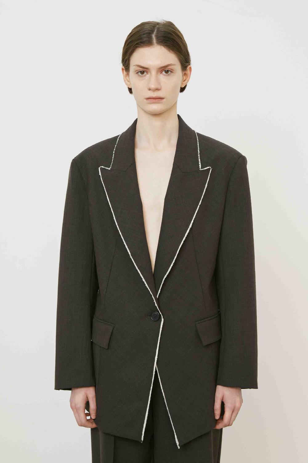 BLAZER FODERATO MONOPETTO A MANICHE LUNGHE CON SPACCHI,COLLO REVER CON PROFILO A TAGLIO VIVO IN TESSUTO A CONTRASTO E TASCHE DAVANTI CON PATTA.