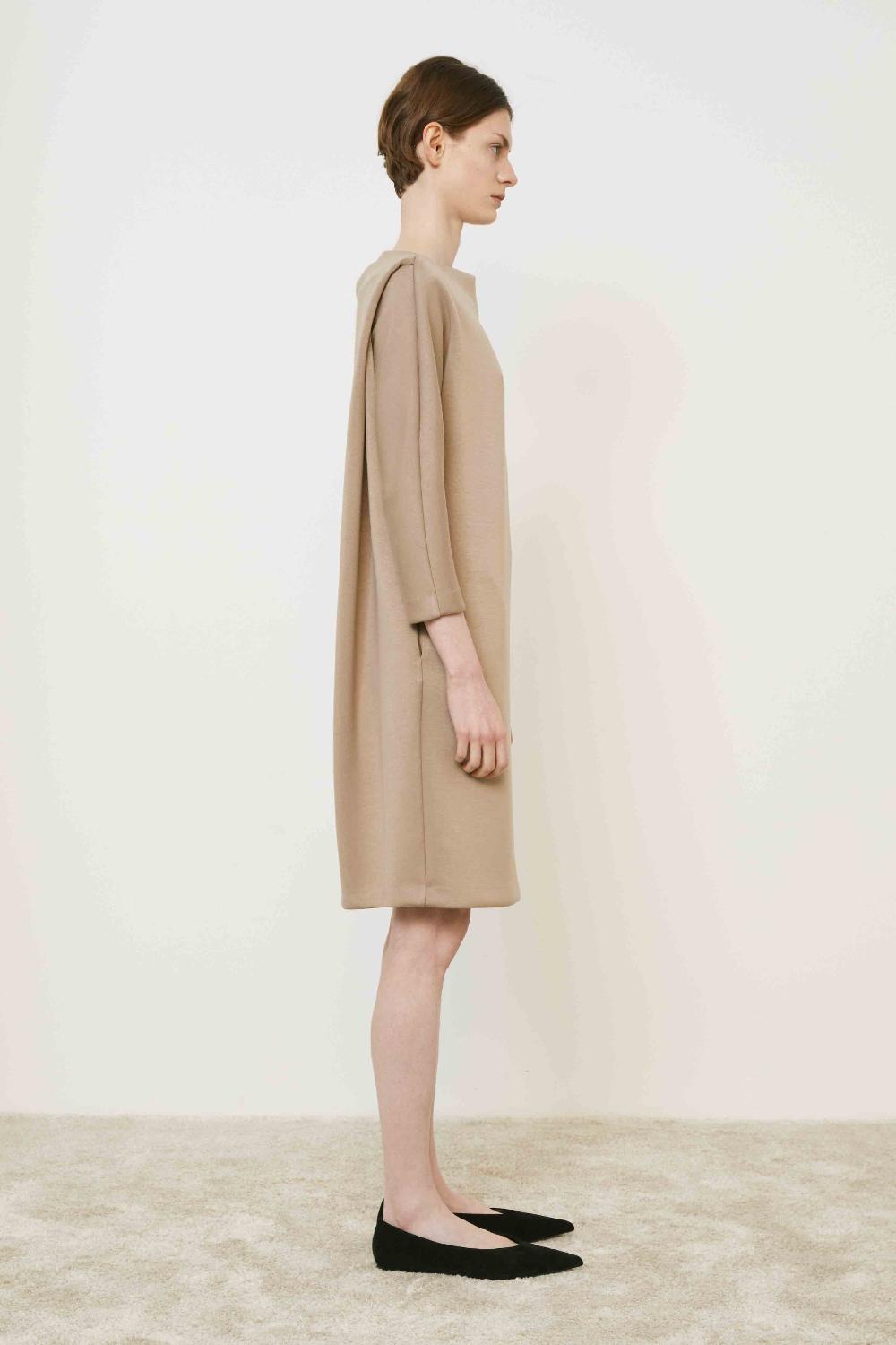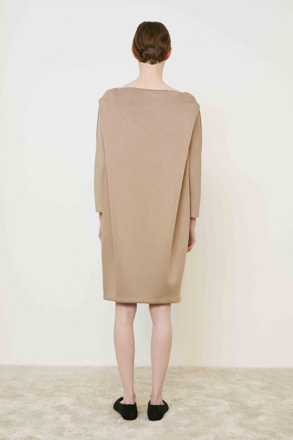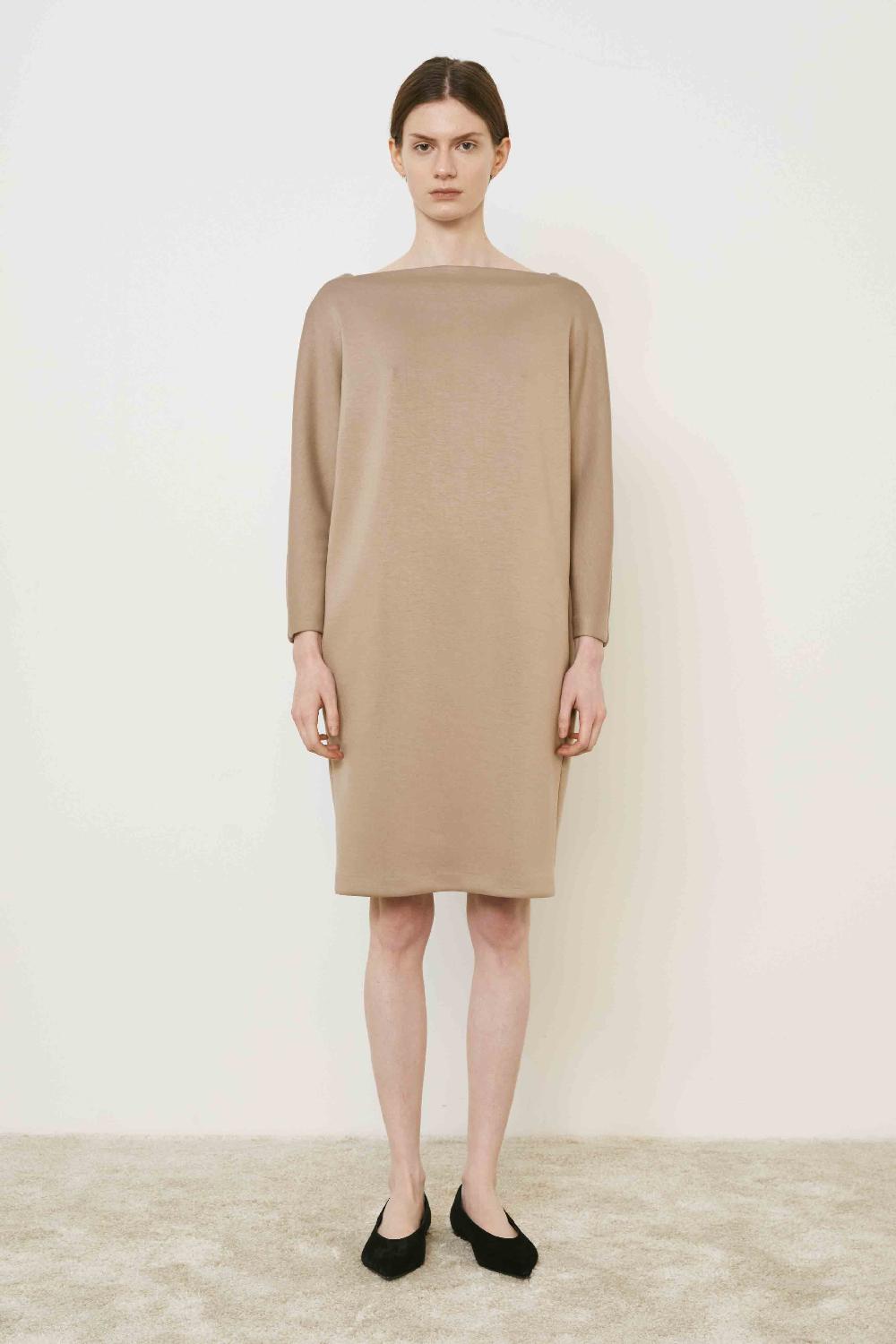 ABITO CON MANICA LUNGA A KIMONO,SCOLLO A BARCHETTA E TASCHE LATERALI.