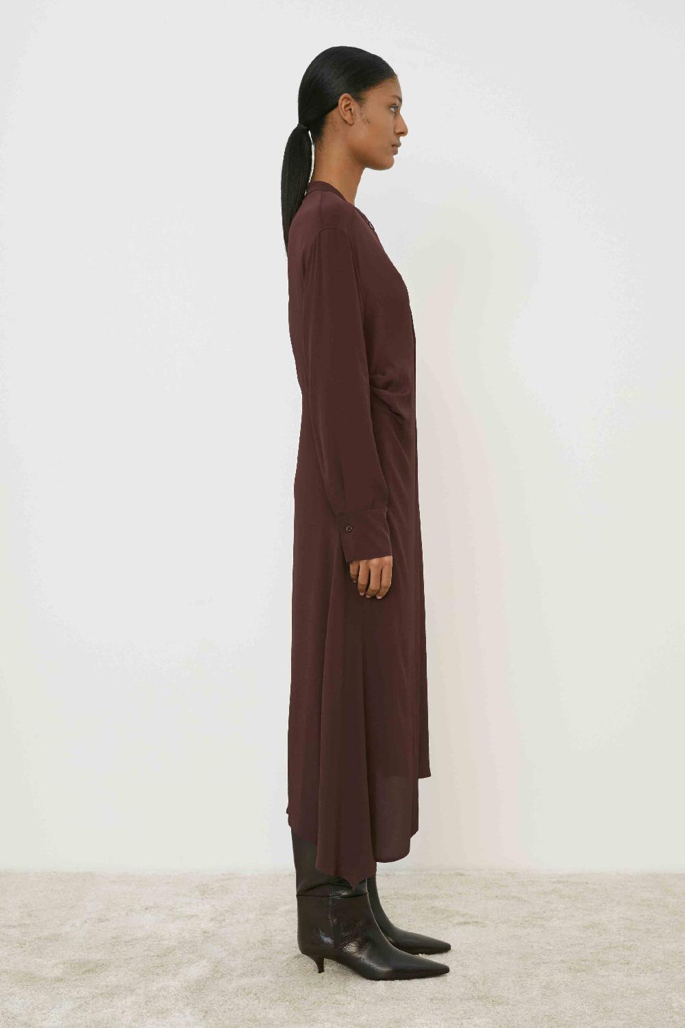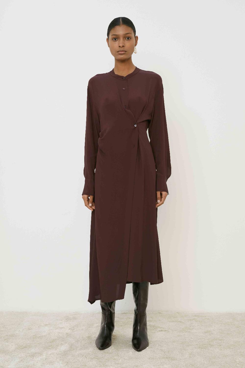 ABITO LUNGO CON COLLO A SOLINO E ALLACCIATURA FRONTALE