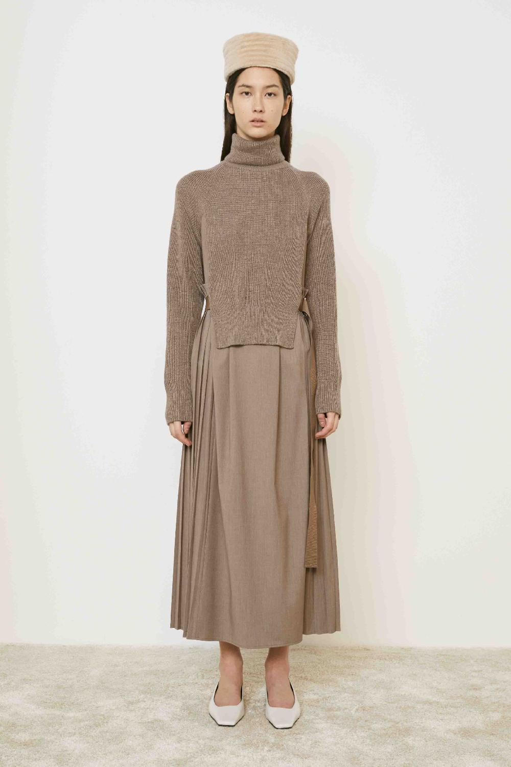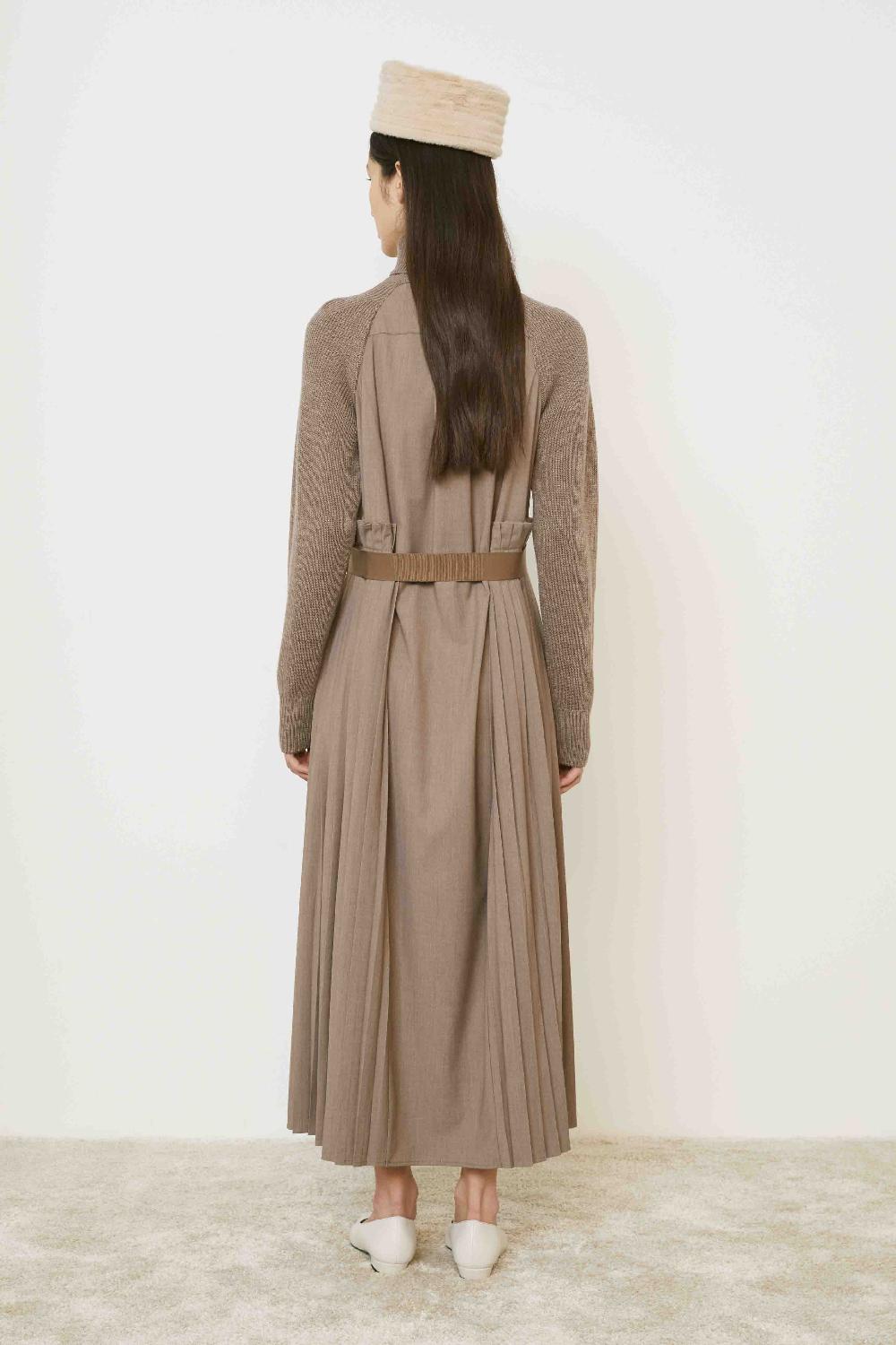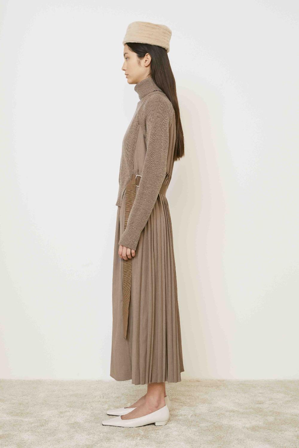 ABITO LUNGO CON PARTE SOPRA IN MAGLIERIA A COSTE E GONNA PLISSETTATA CON CINTURA