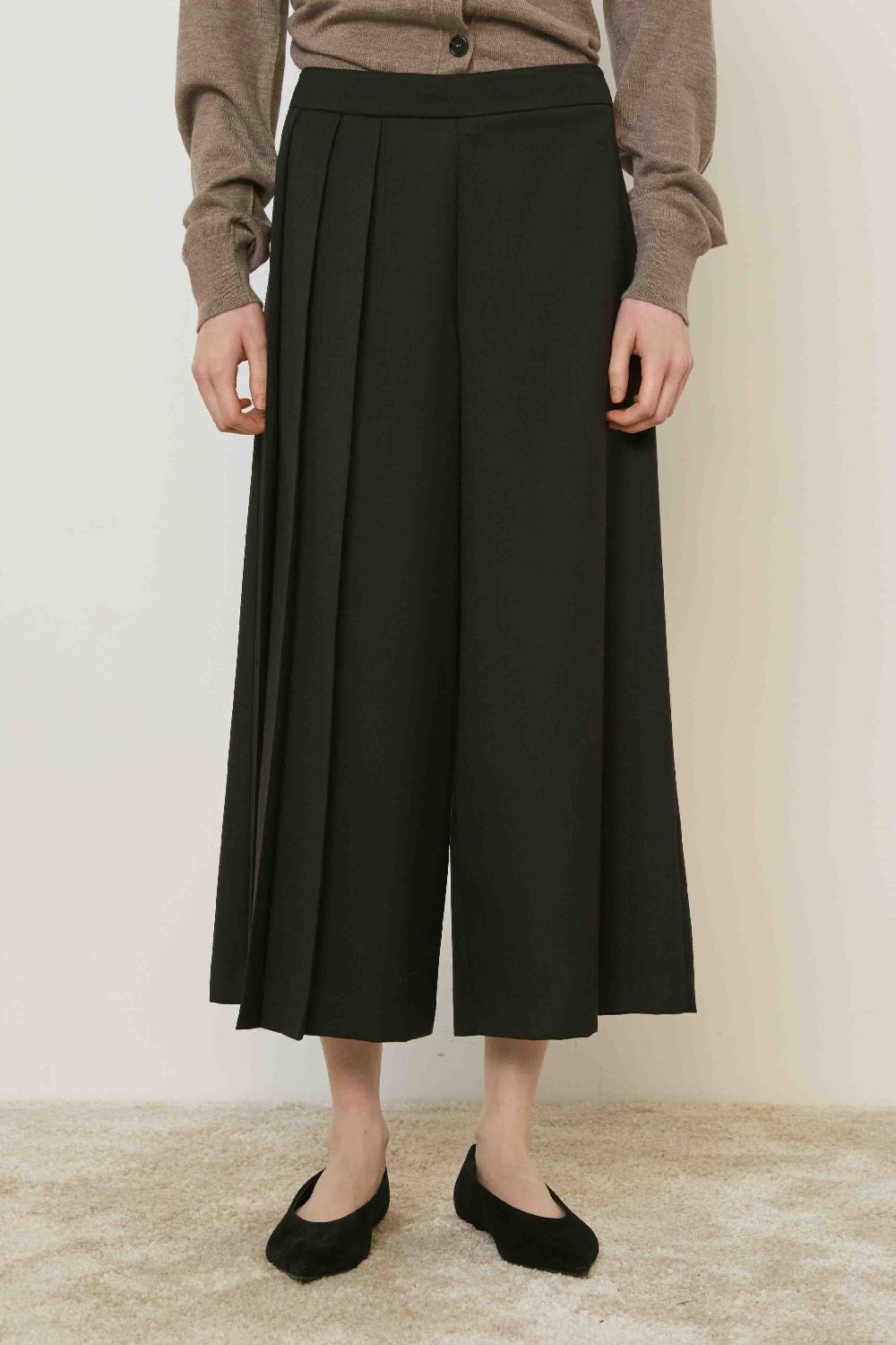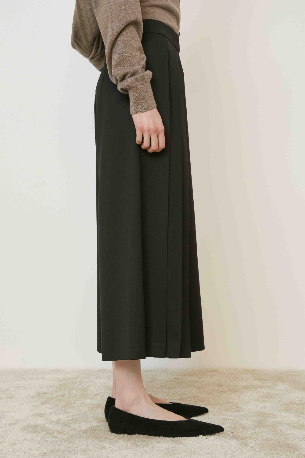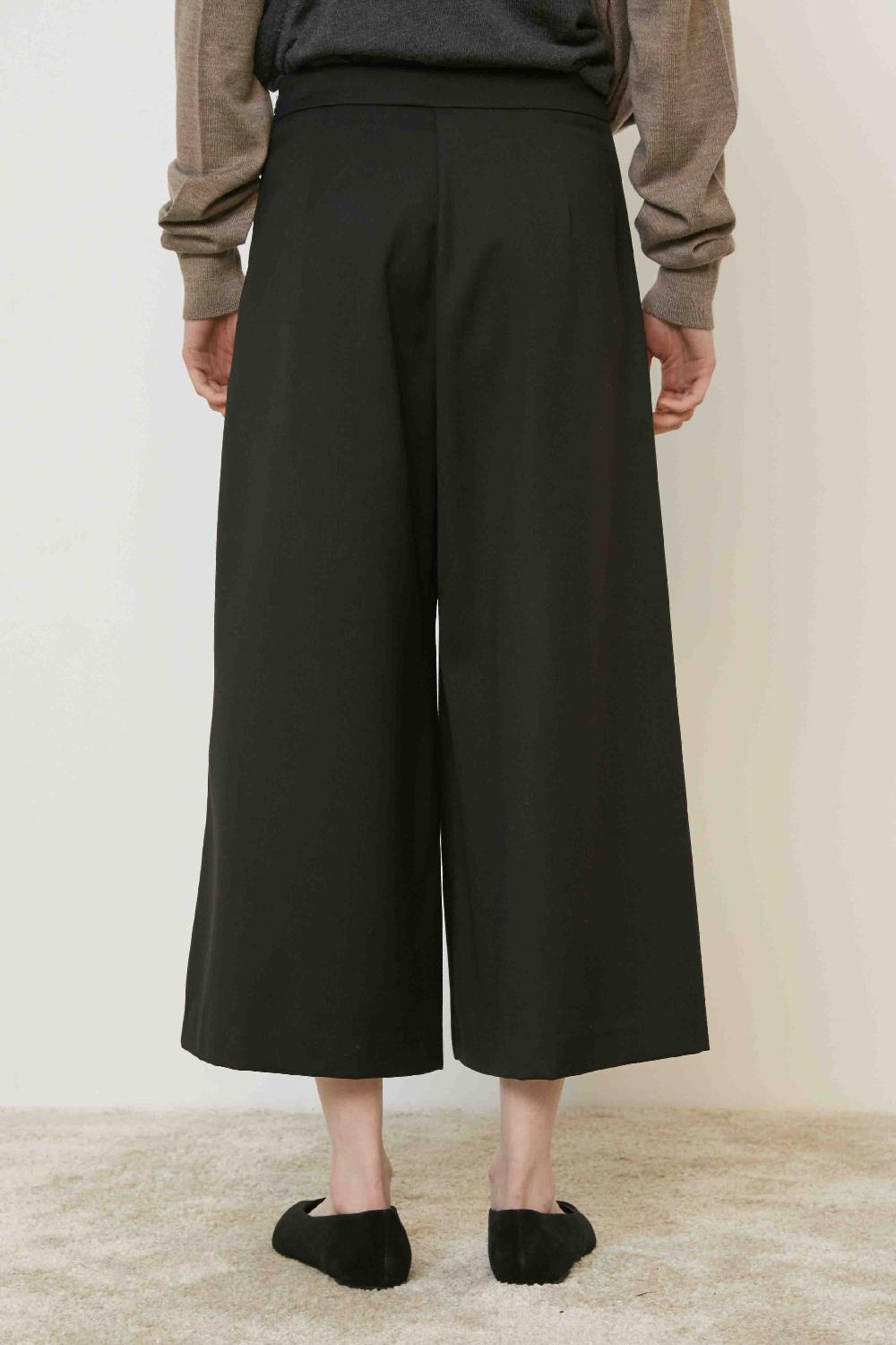 AMPIO PANTALONE ALLA CAVIGLIA CON GRUPPO PIEGHE SULLA PARTE DESTRA INDOSSATA.CHIUSURA LATERALE CON ZIP INVISIBILE