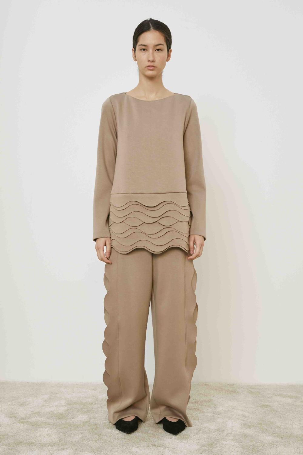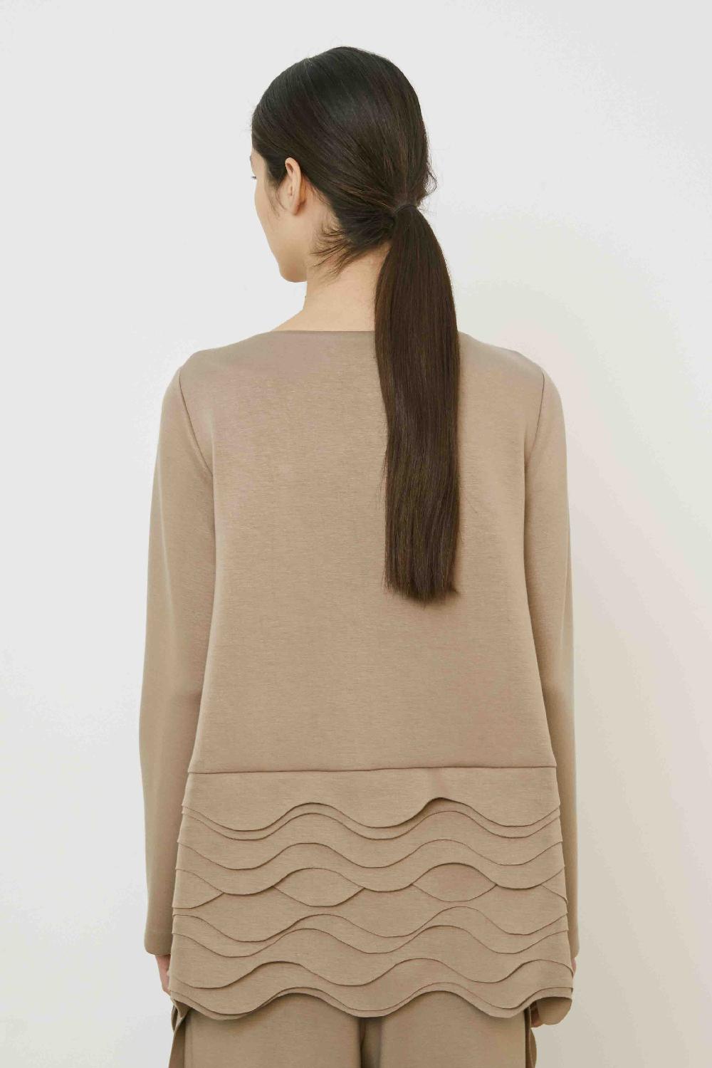 BLUSA A MANICHE LUNGHE CON MOTIVO STRISCE ONDULATE AL FONDO.