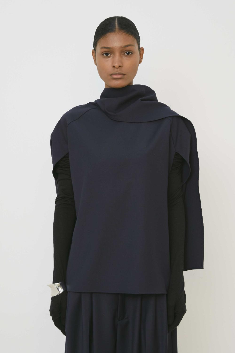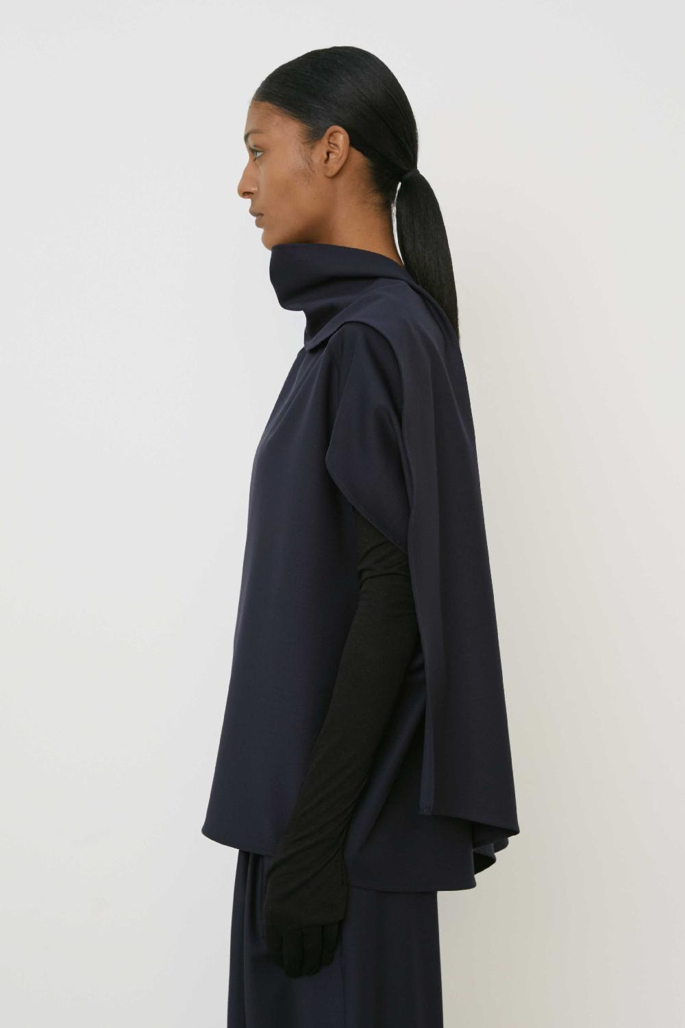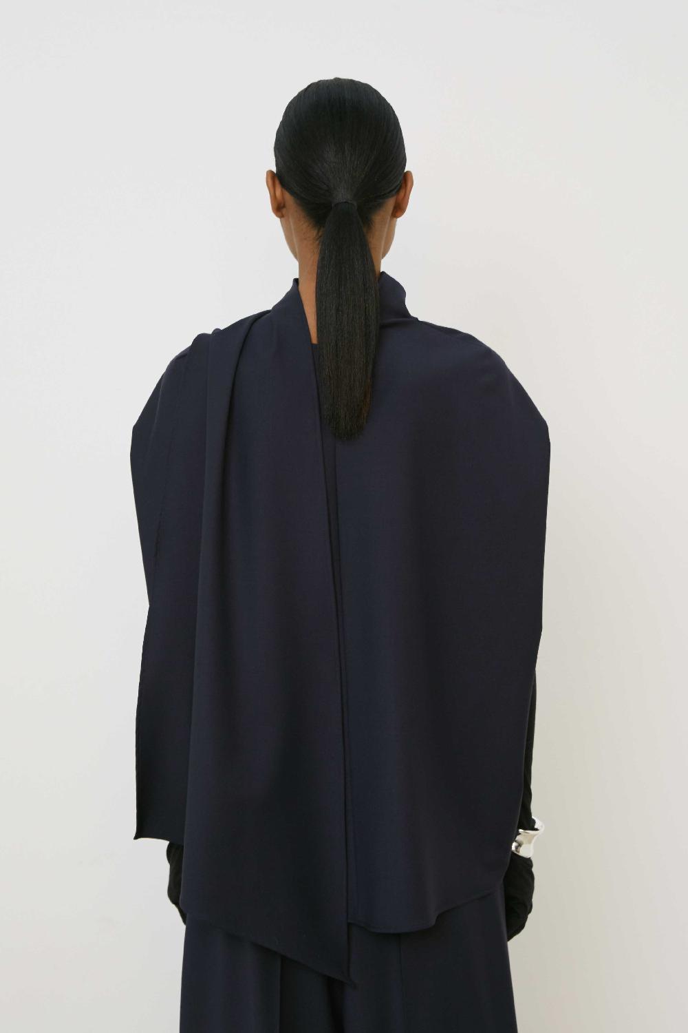 BLUSA GIROCOLLO CON MANICA AD ALETTA E SCIARPA DA ANNODARE IN DIVERSI MODI