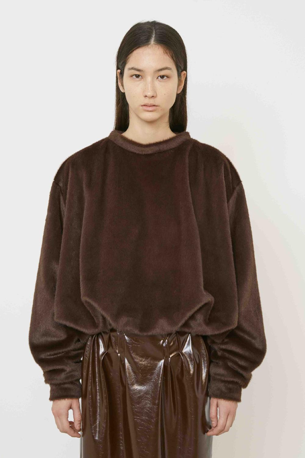 BLUSA IN ECOPELLICCIA CON ORLO ARRICCIATO