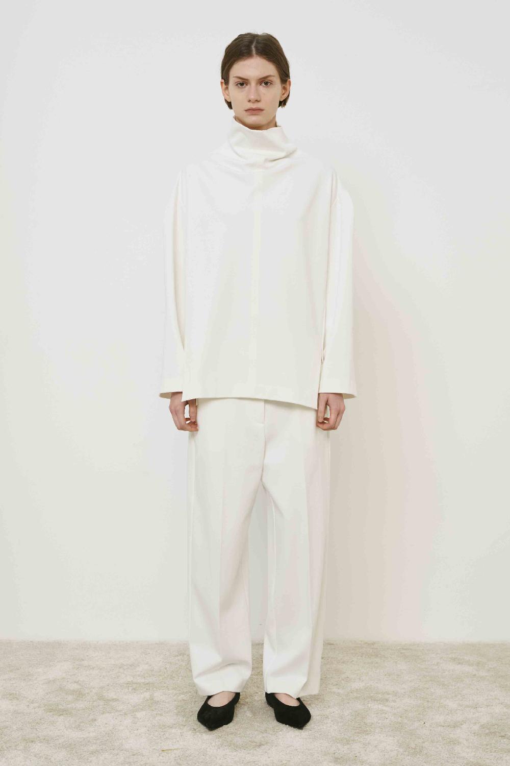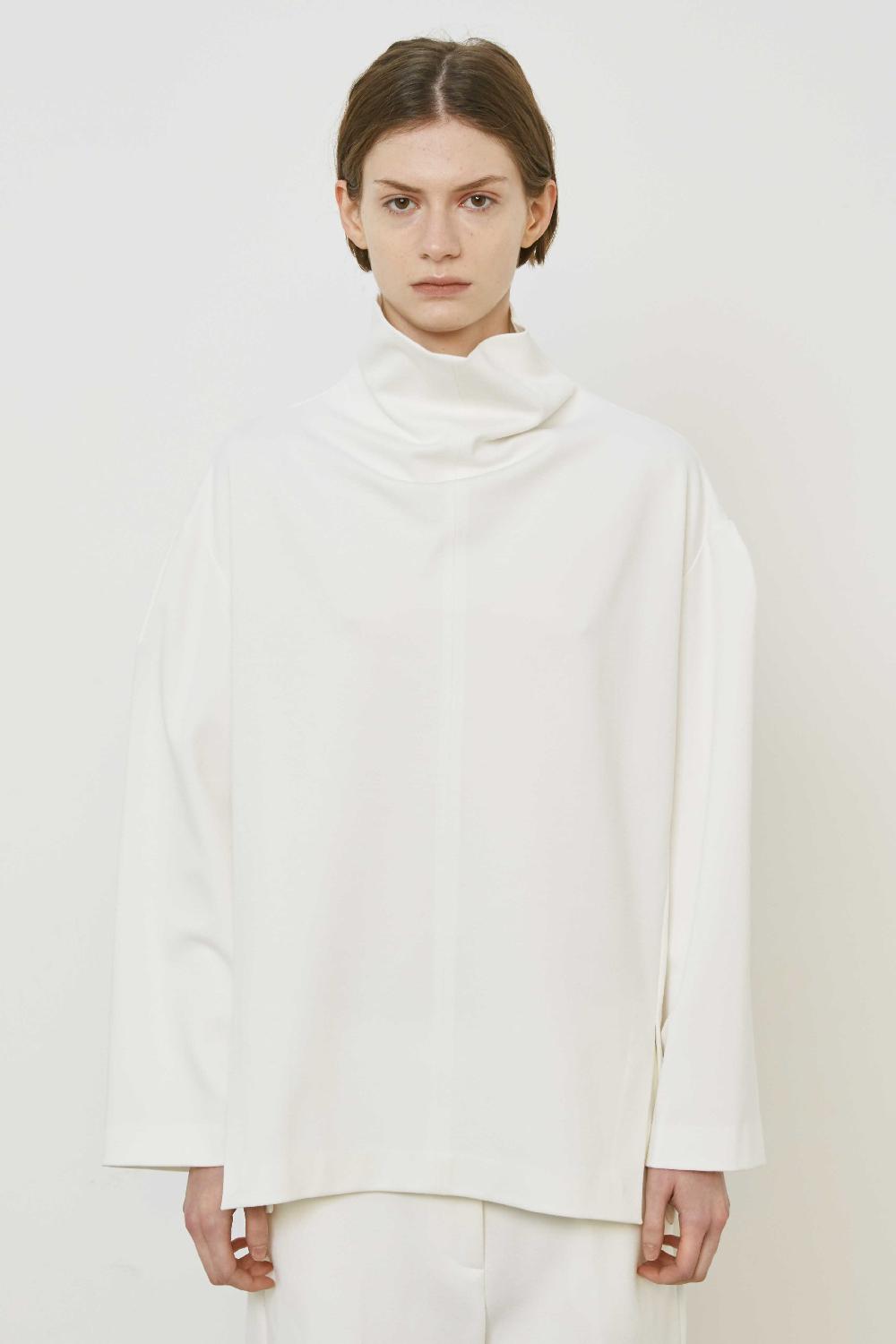 BLUSA MANICA LUNGA CON COLLO ALTO E SPACCO NEL FIANCO