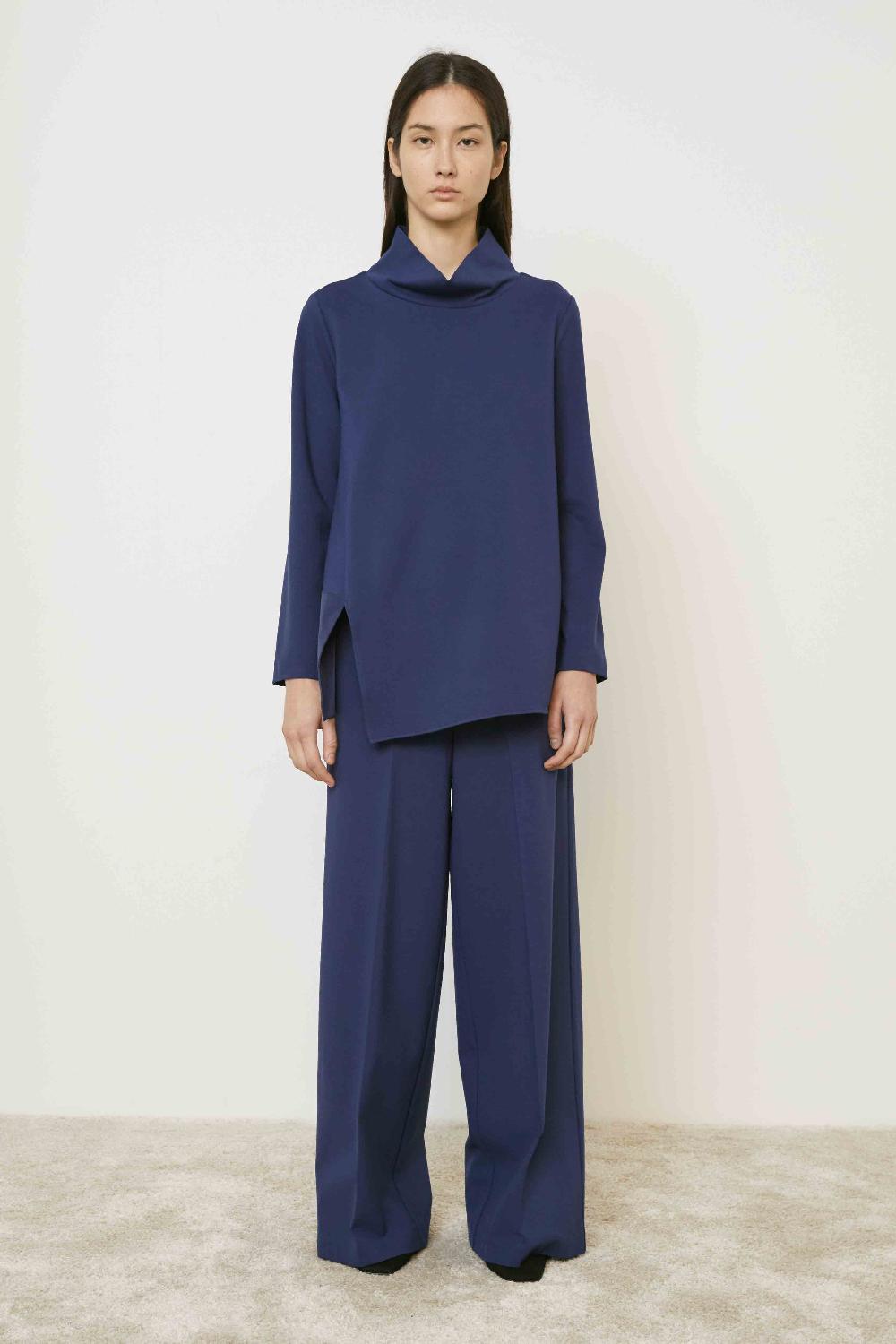 BLUSA DI LINEA SVASATA A MANICA LUNGA CON COLLO ALTO.INSERTO IN TAFFETà SUL FONDO.