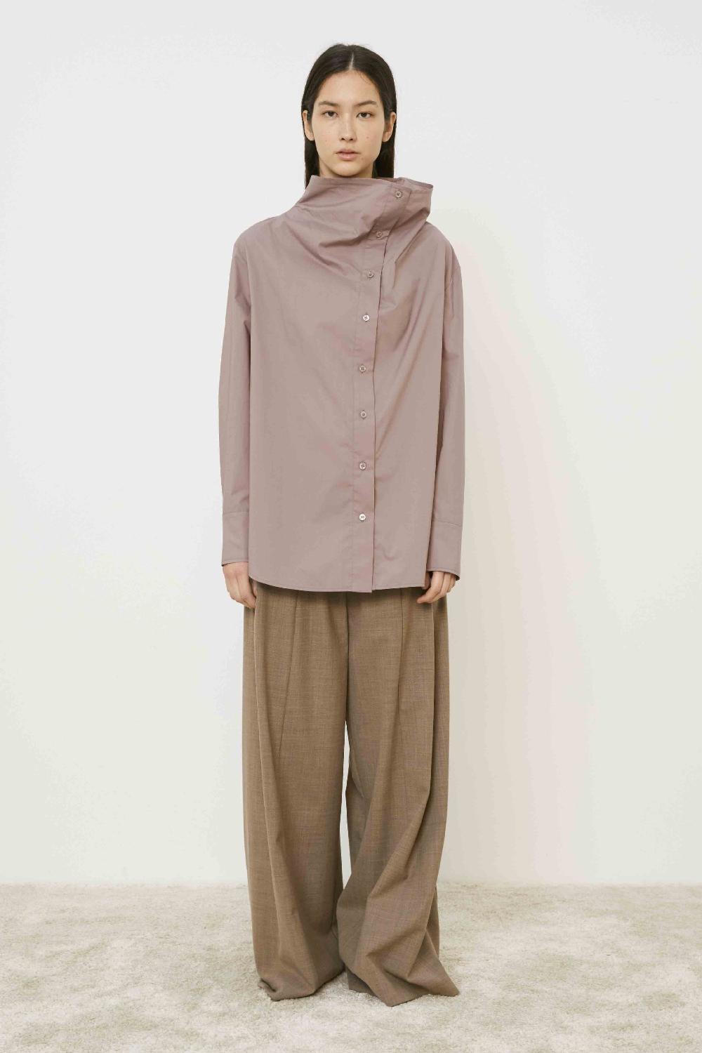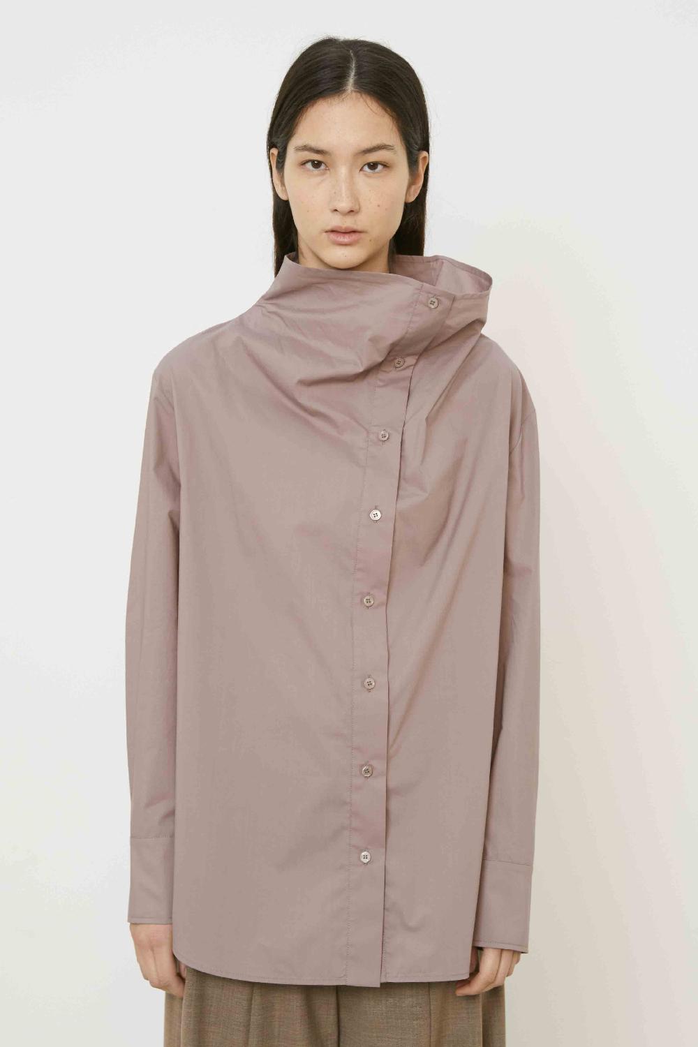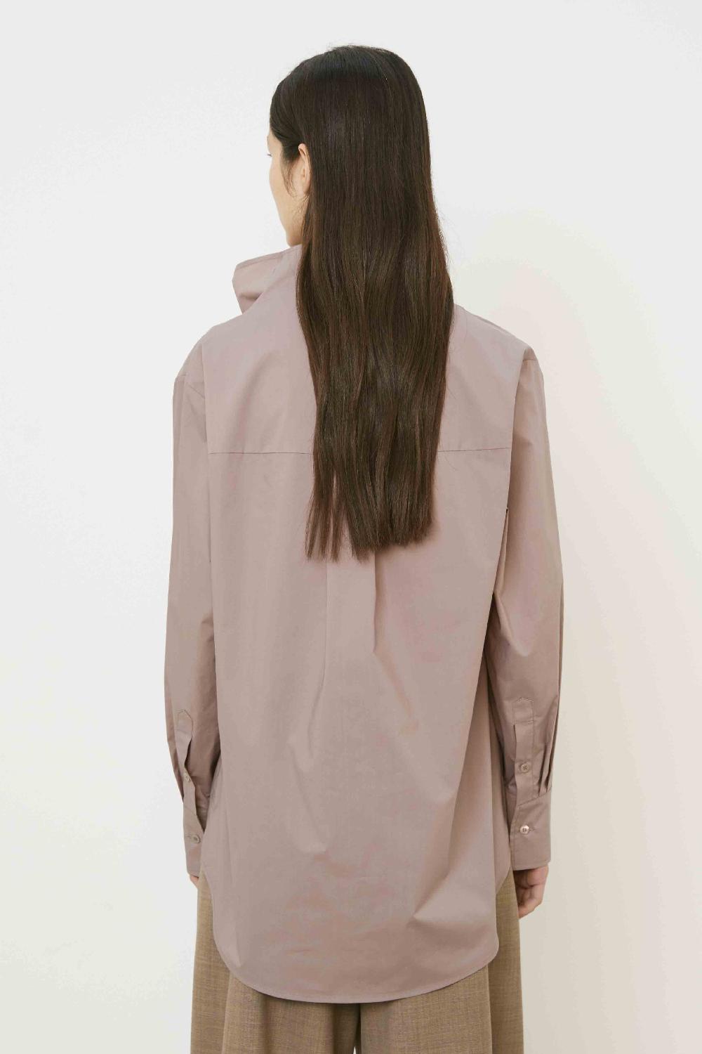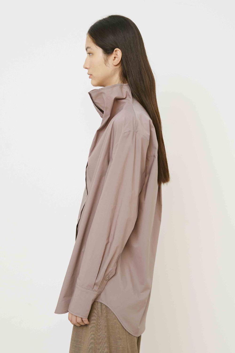 CAMICIA AMPIA A MANICA LUNGA CON COLLO ALTO E CHIUSURA FRONTALE CON BOTTONI.CONTROPIEGA CENTRALE SUL DIETRO CON ORLO STONDATO