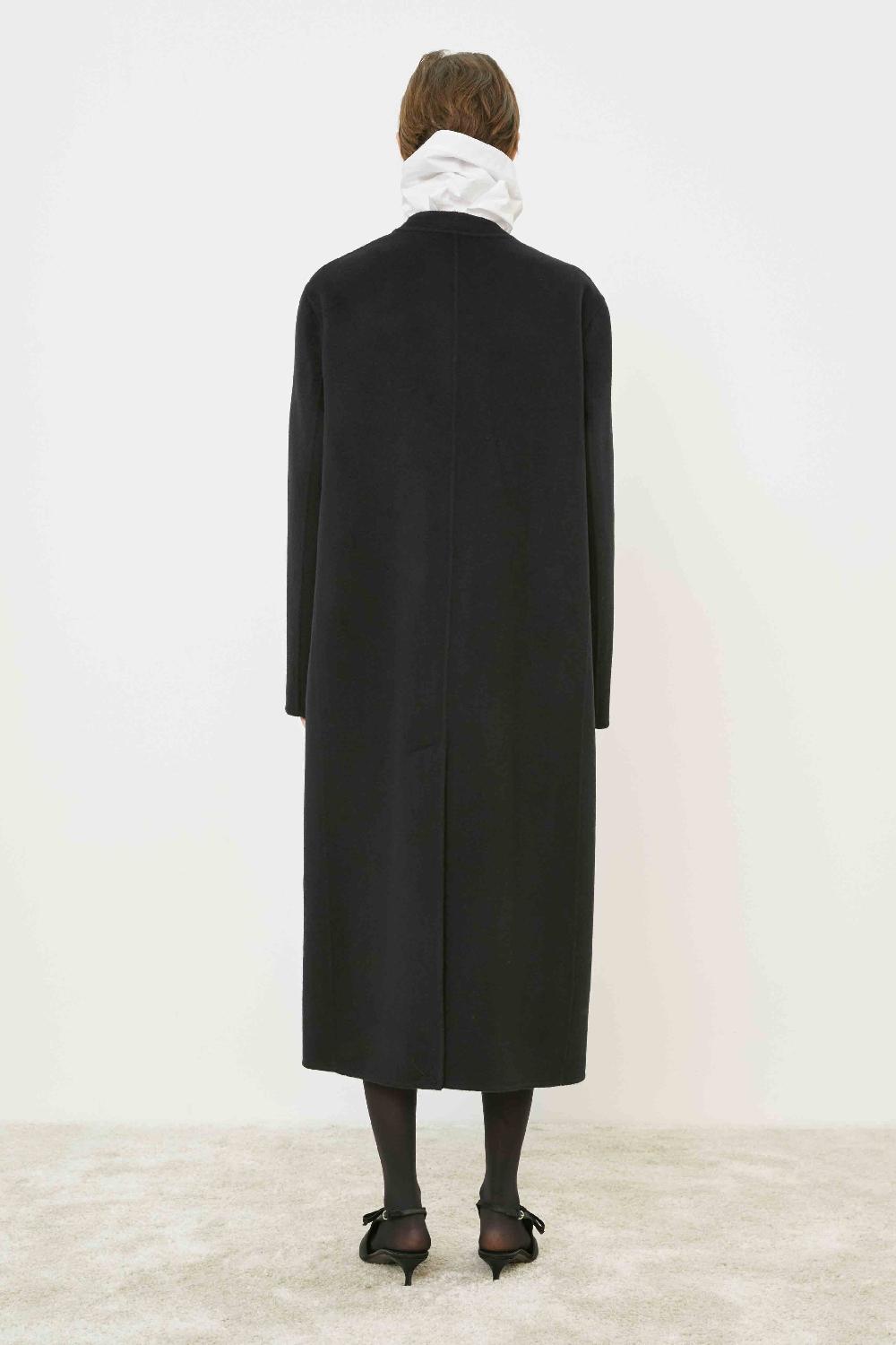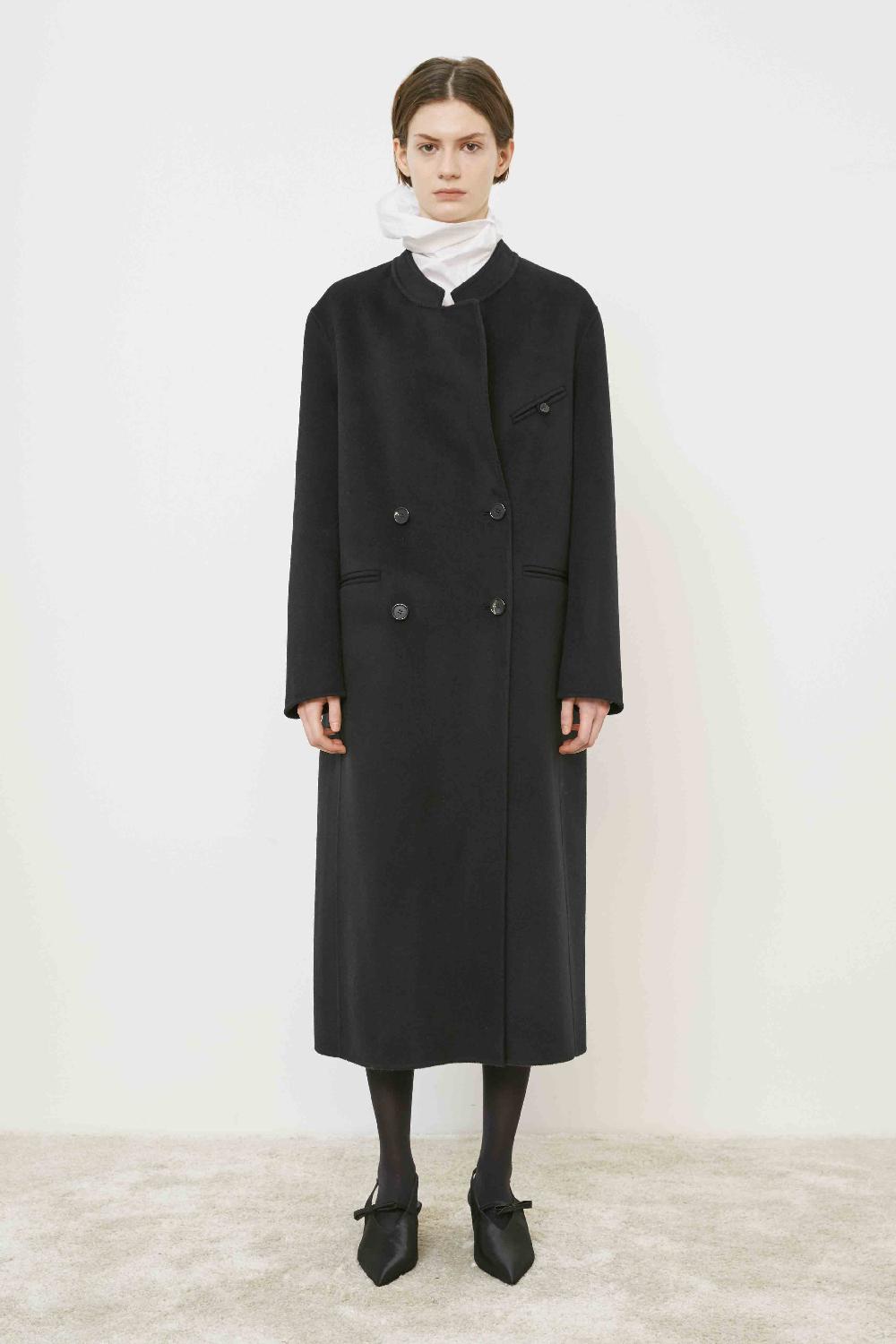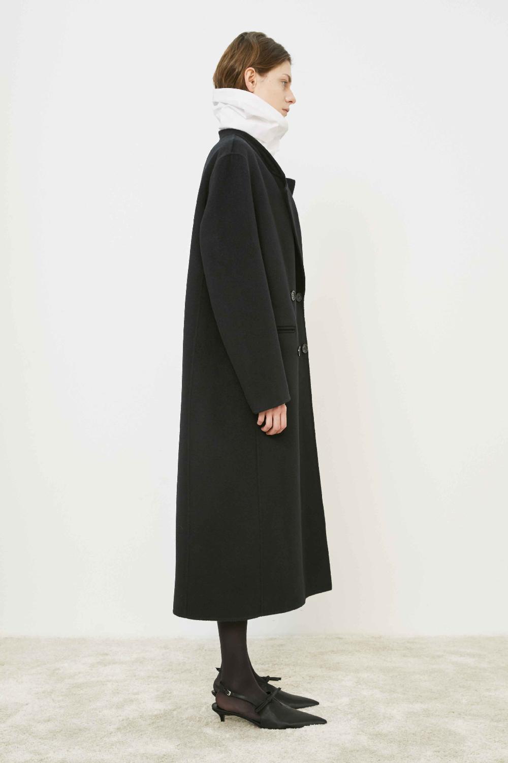 CAPPOTTO SFODERATO A DOPPIOPETTO,MANICA LARGA CON SPALLA SCESA,TASCHE A FILETTO SUL DAVANTI E COLLO REVER.LUNGHEZZA MIDI.