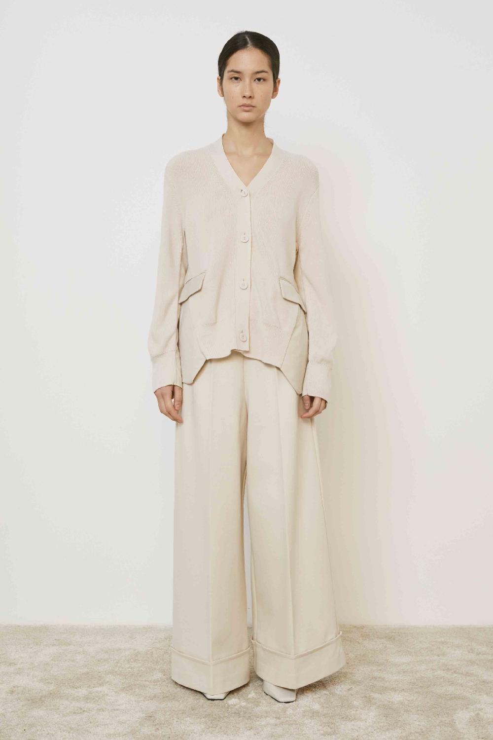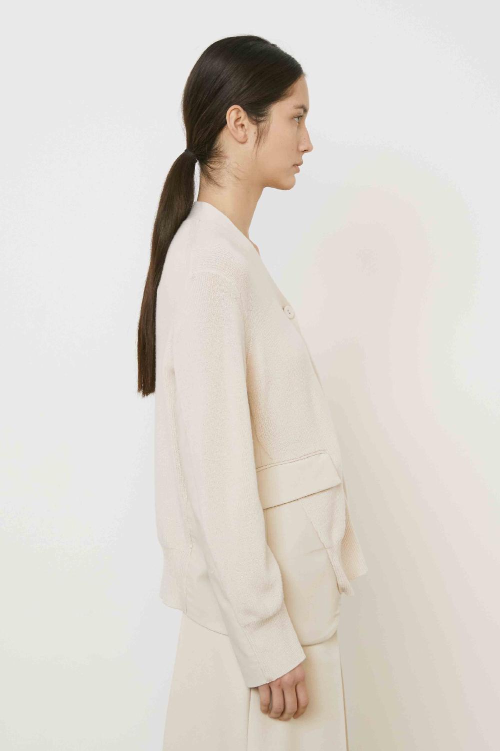 CARDIGAN IN LANA CON INSERTI DI TESSUTO SUI FIANCHI