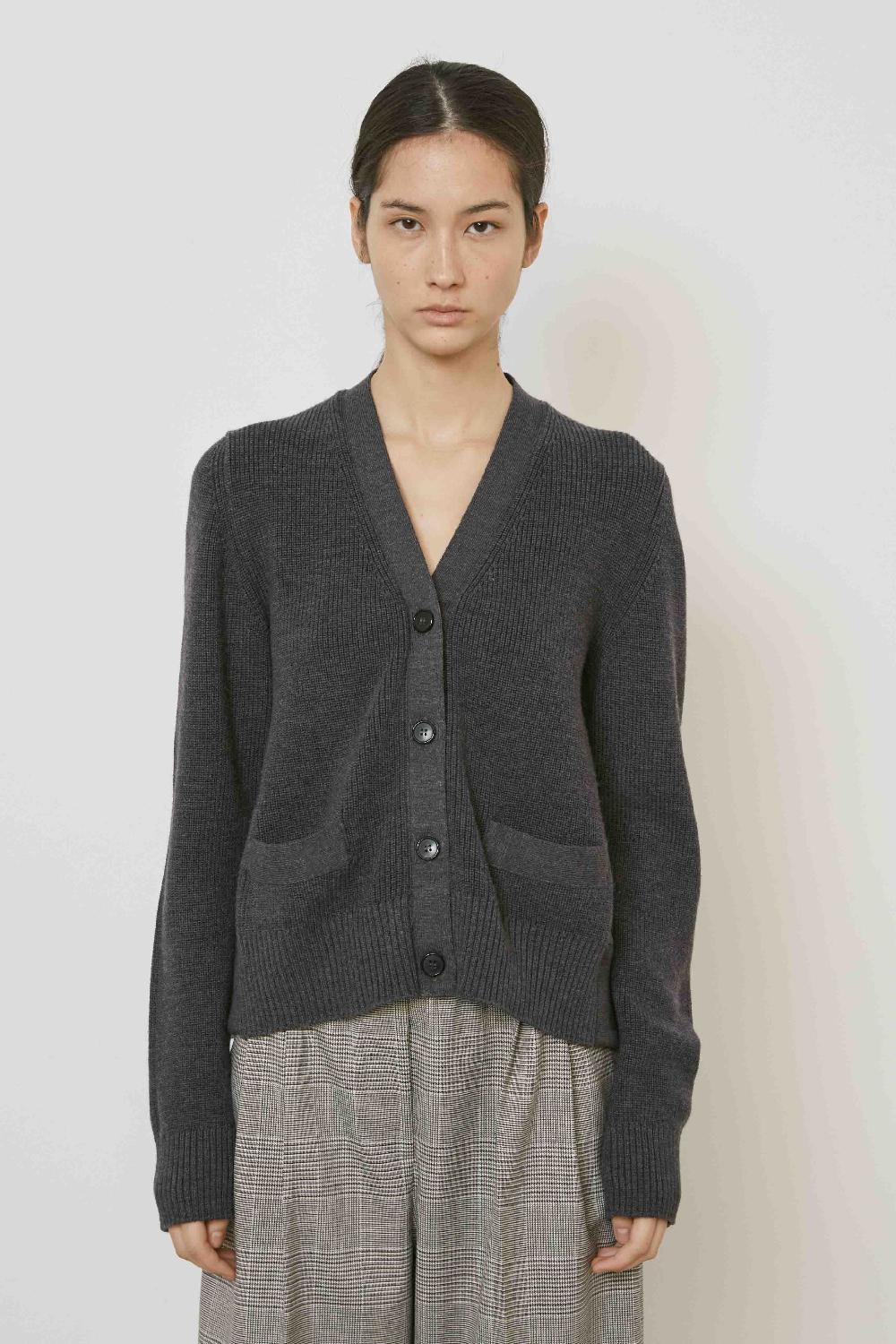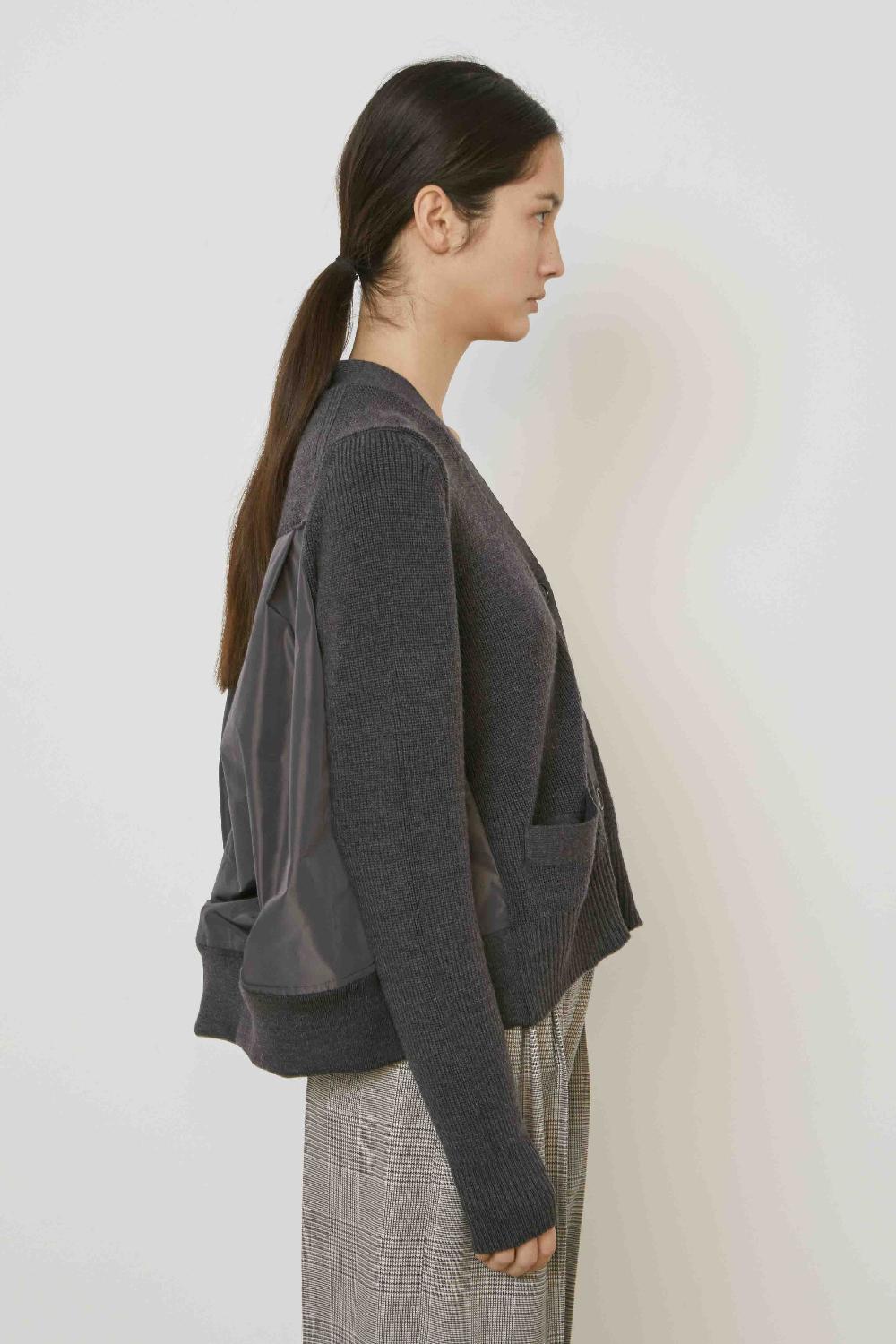 CARDIGAN IN PURA LANA CON INSERTO DI TESSUTO TAFFETA SUL DIETRO.CHIUSURA FRONTALE CON BOTTONI
