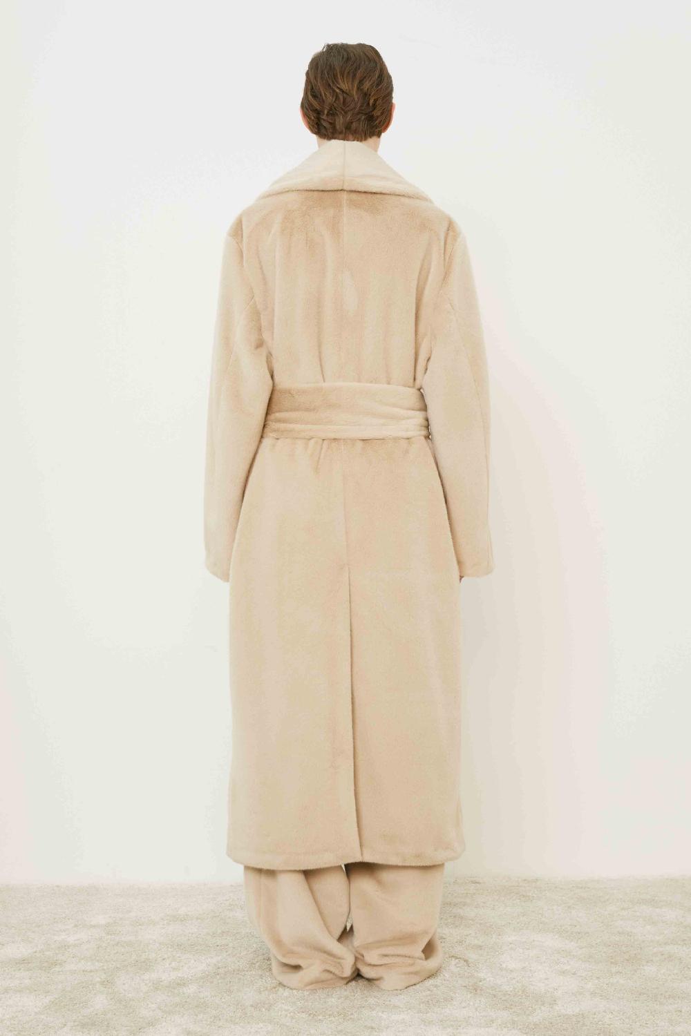 ECO-PELLICCIA LUNGA APERTA CON TASCHE