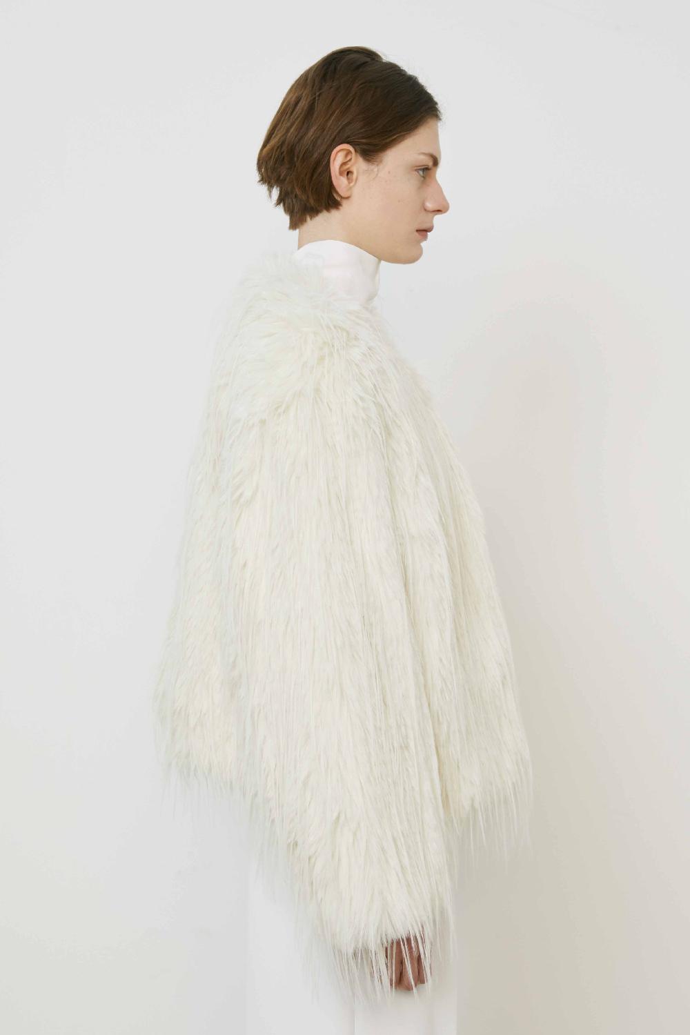 ECO PELLICCIA CORTA FODERATA CON SCOLLO ROTONDO A MANICA LUNGA.