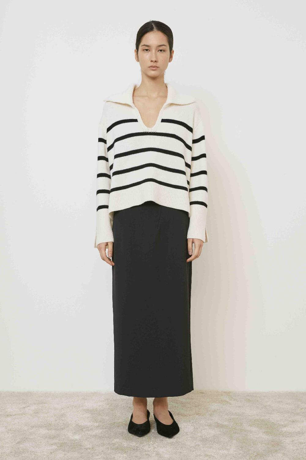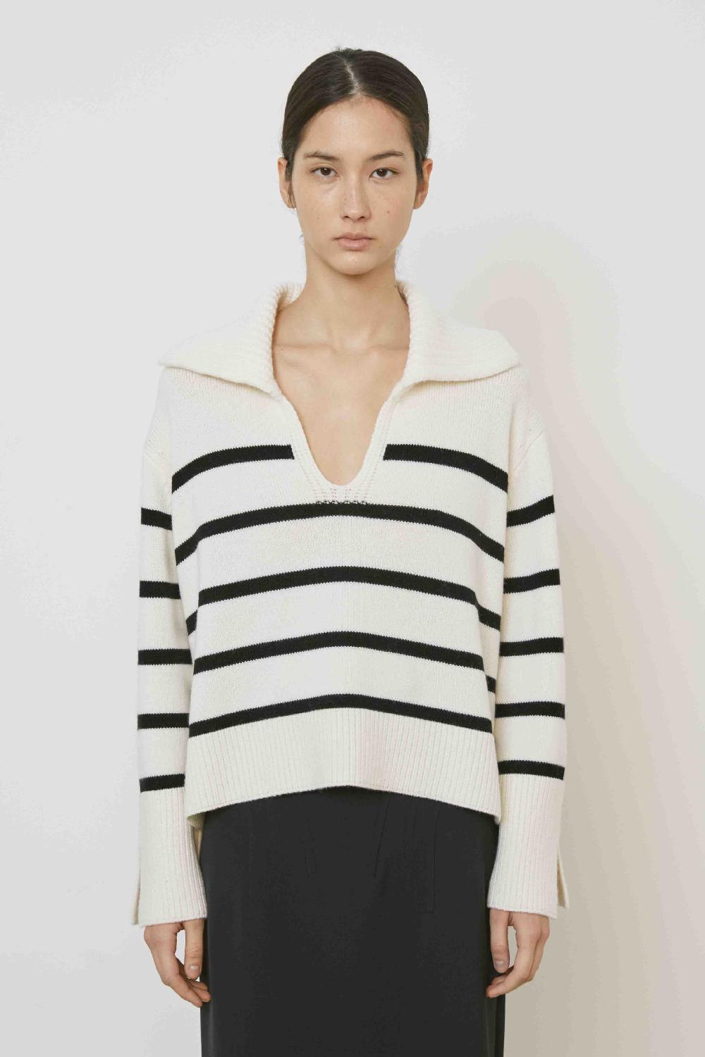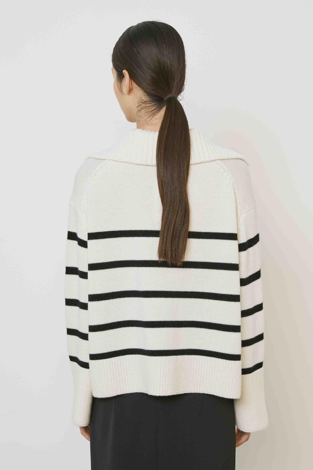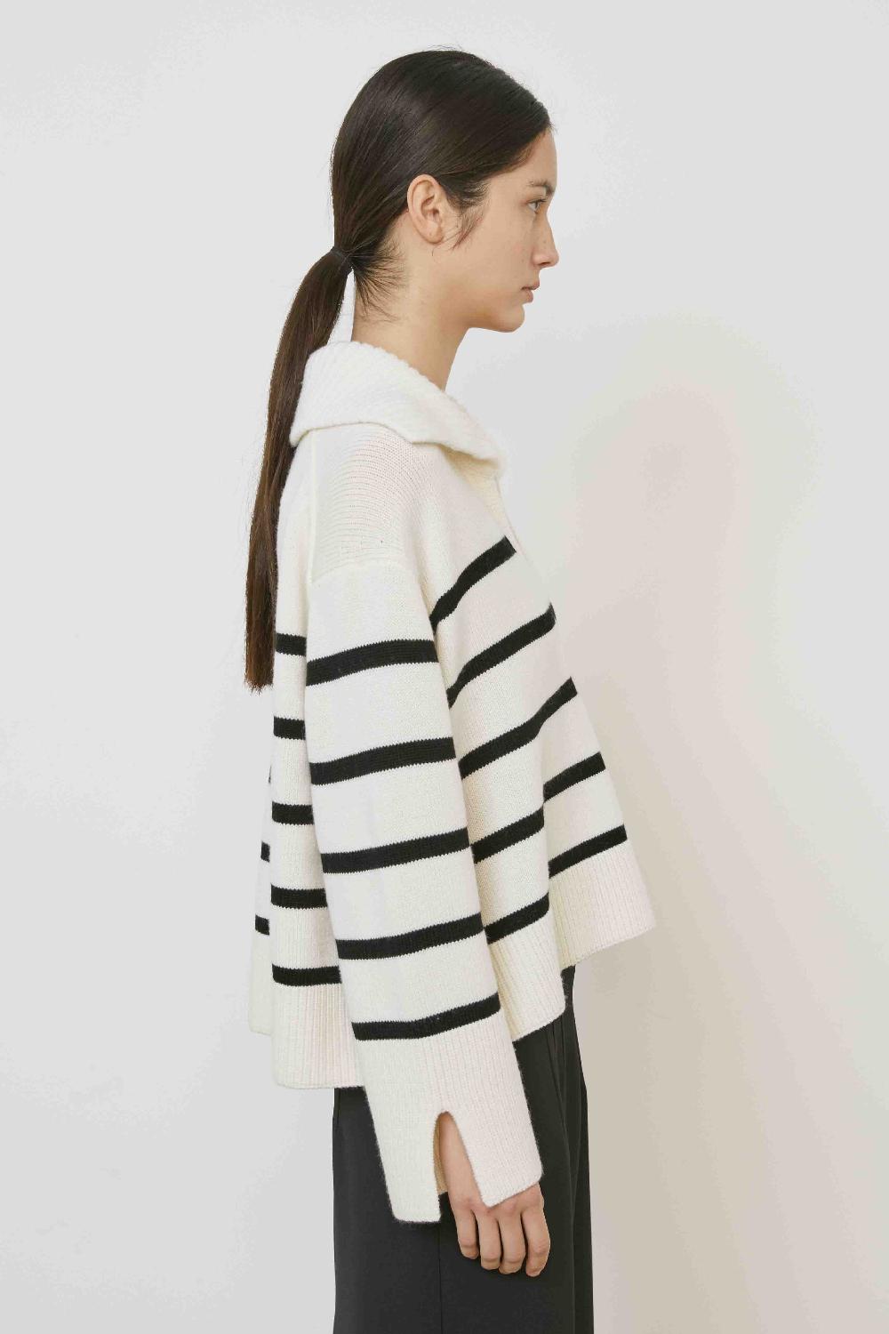 MAGLIA A RIGHE IN PURA LANA CON COLLETTO E AMPIE MANICHE CON SPACCO AL FONDO