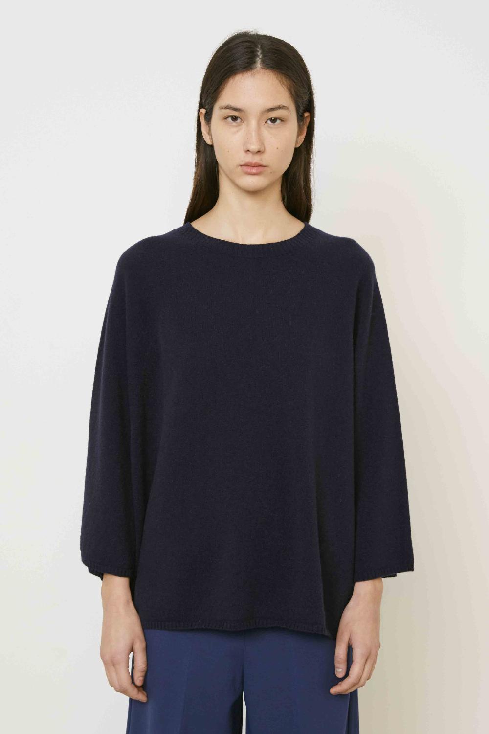 MORBIDO MAGLIONE IN PURA LANA MANICA KIMONO A TRE-QUARTI E SCOLLO ROTONDO