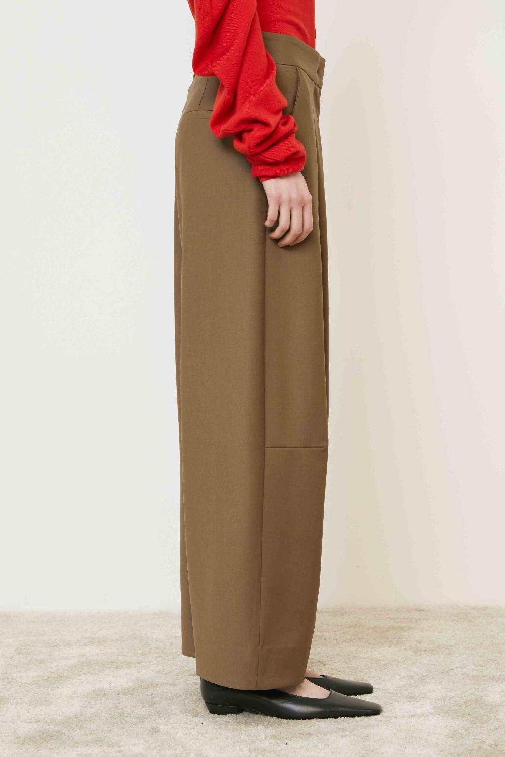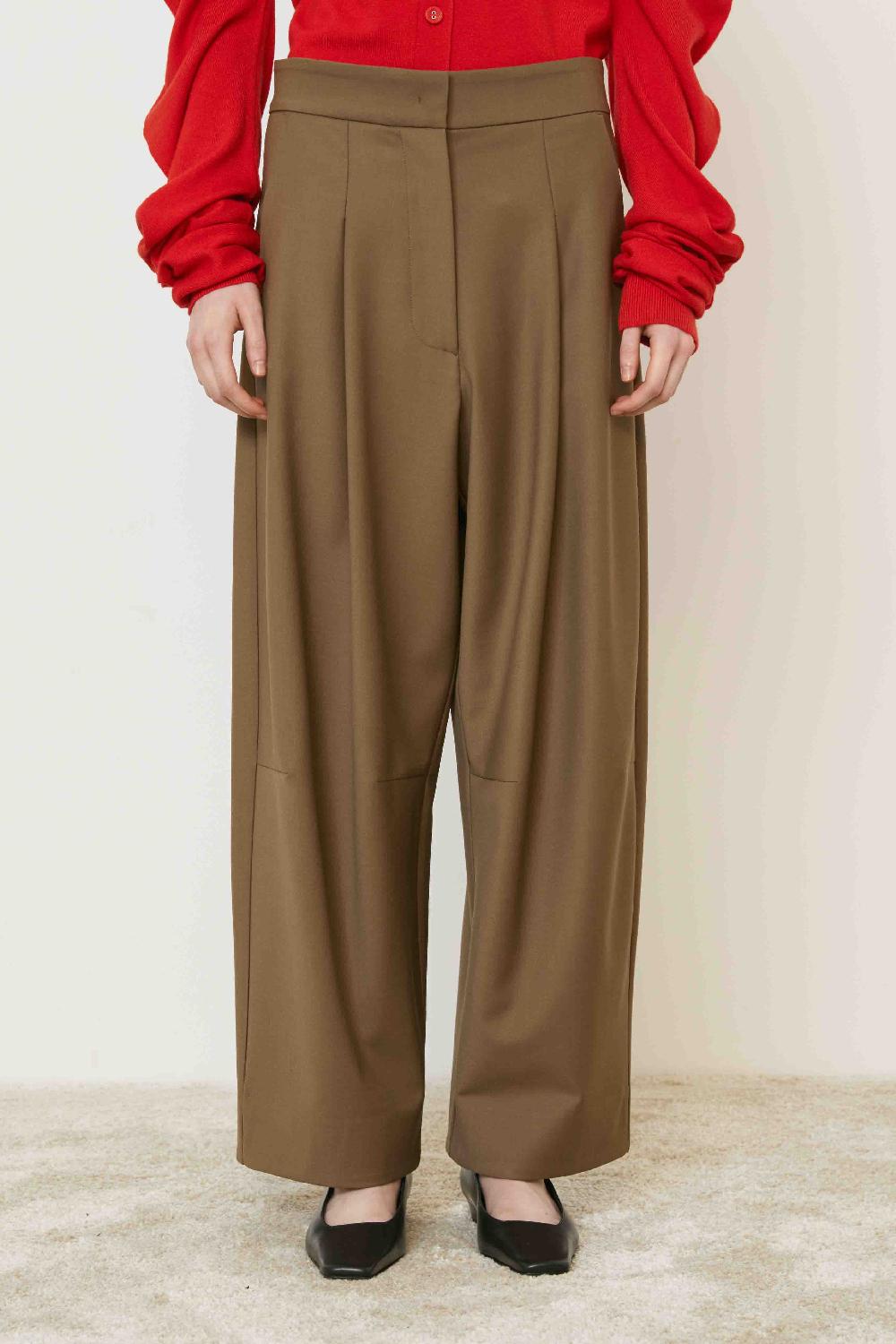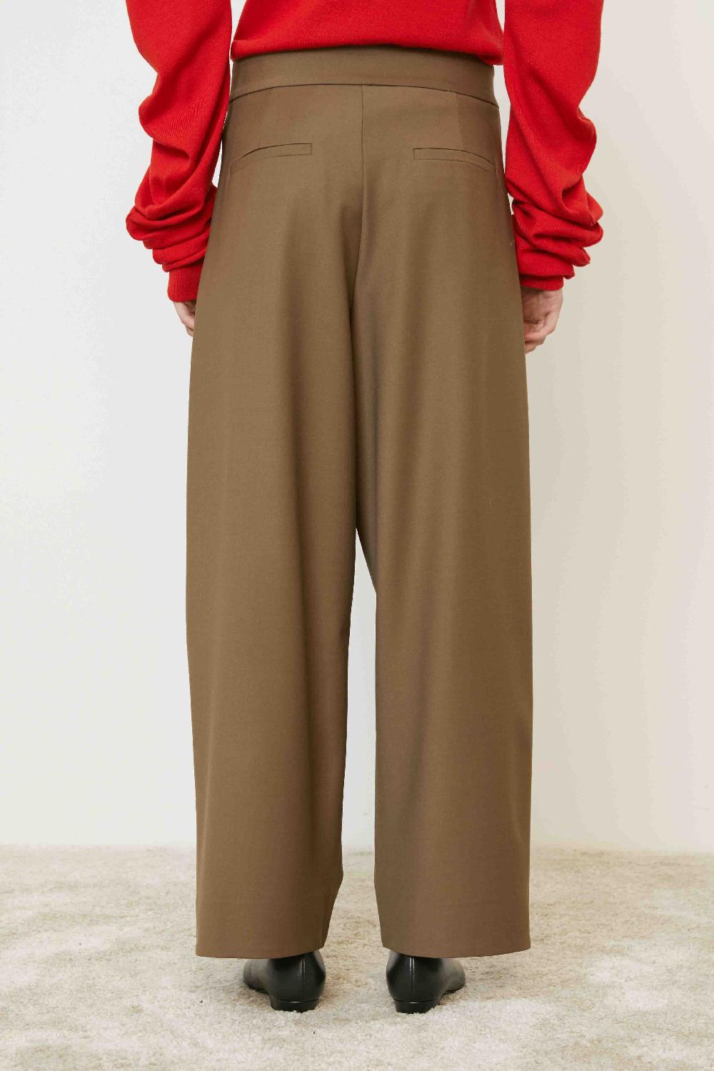 PANTALONE AMPIO CON PIEGHE SCIOLTE,TASCHE LATERALI E RIPRESE AL GINOCCHIO.CHIUSURA FRONTALE CON ZIP E BOTTONI.