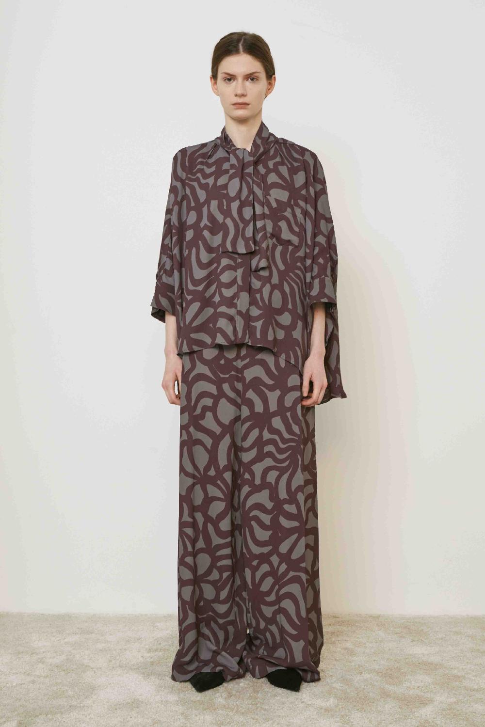 PANTALONE DI LINEA DRITTA A GAMBA LARGA CON PIEGHE DAVANTI SCIOLTE.CHIUSURA SUL FIANCO CON ZIP.