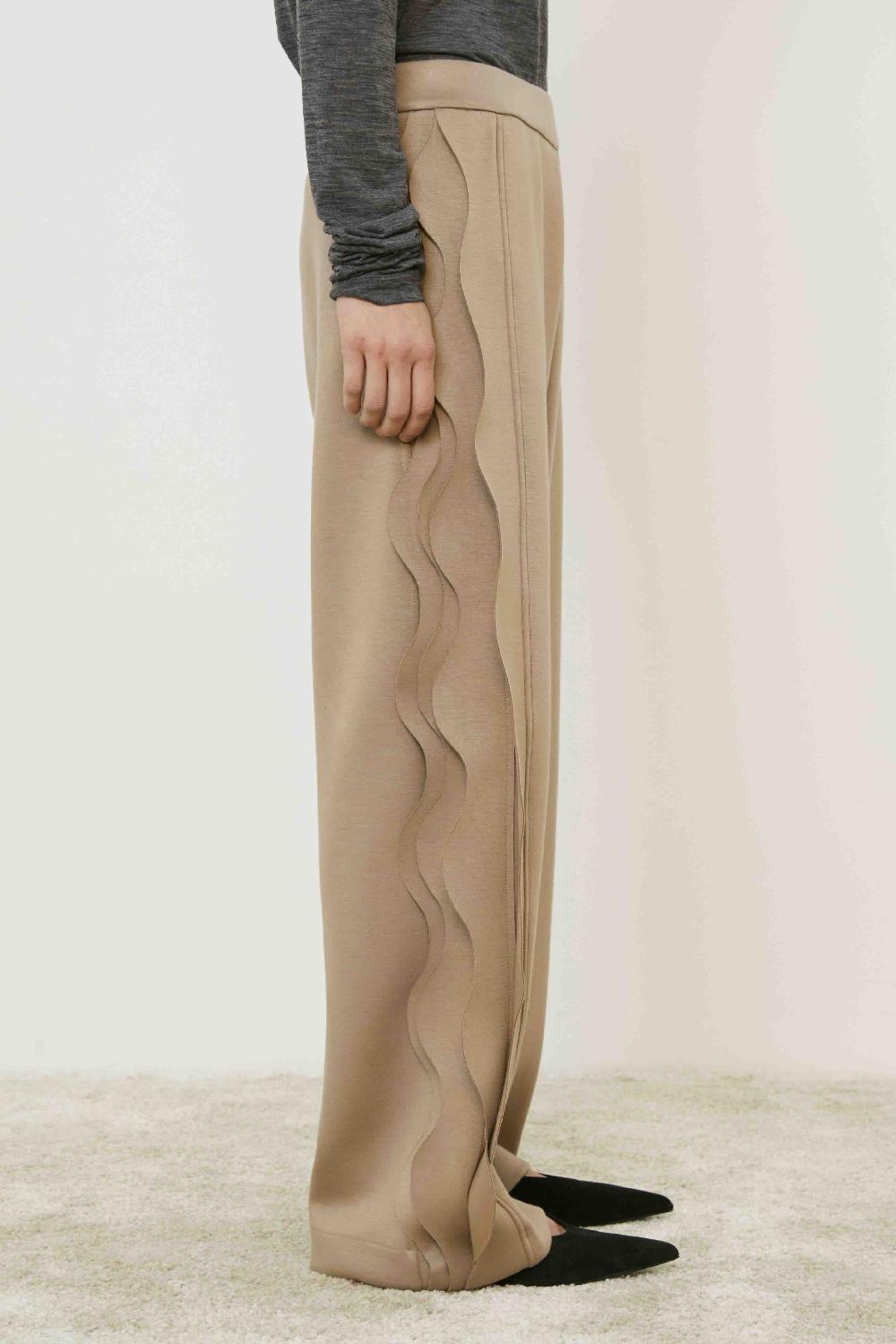 PANTALONE GAMBA DRITTA CON VITA ELASTICATA.MOTIVO STRISCE ONDULATE SUI FIANCHI