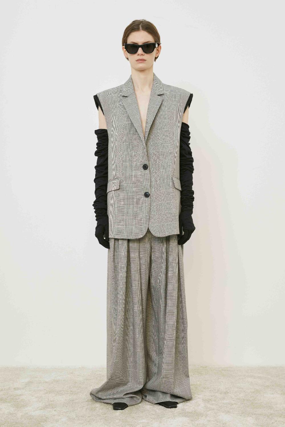 PANTALONI DRITTI A GAMBA LARGA CON PIEGHE SUL DAVANTI,TASCHE LATERALI E CHIUSURA FRONTALE CON ZIP