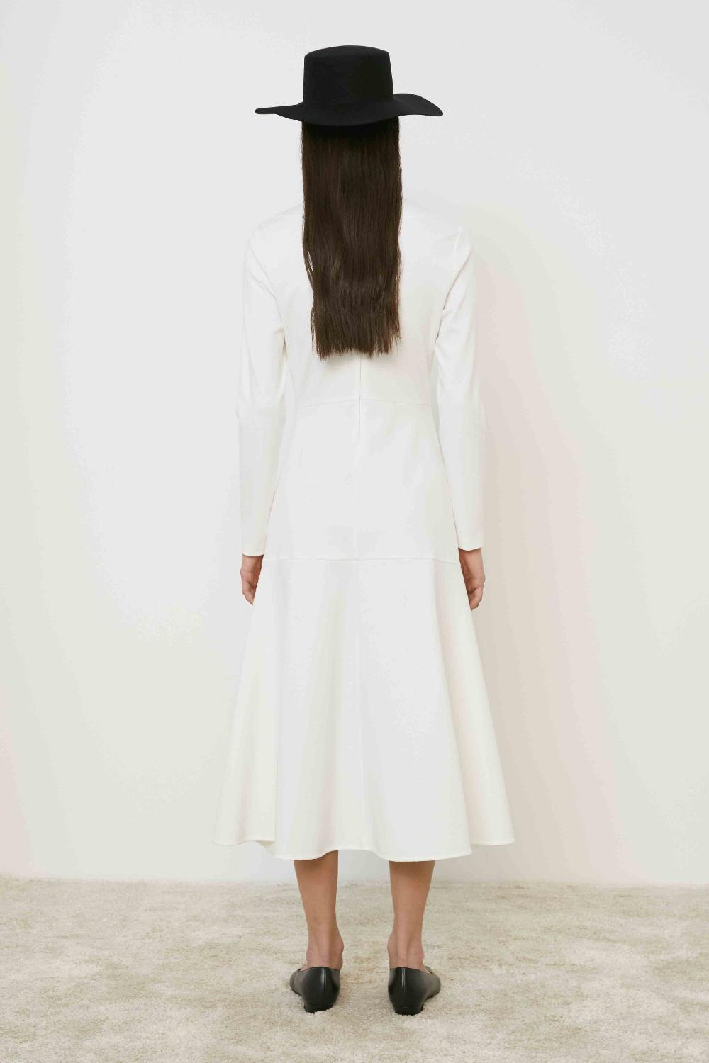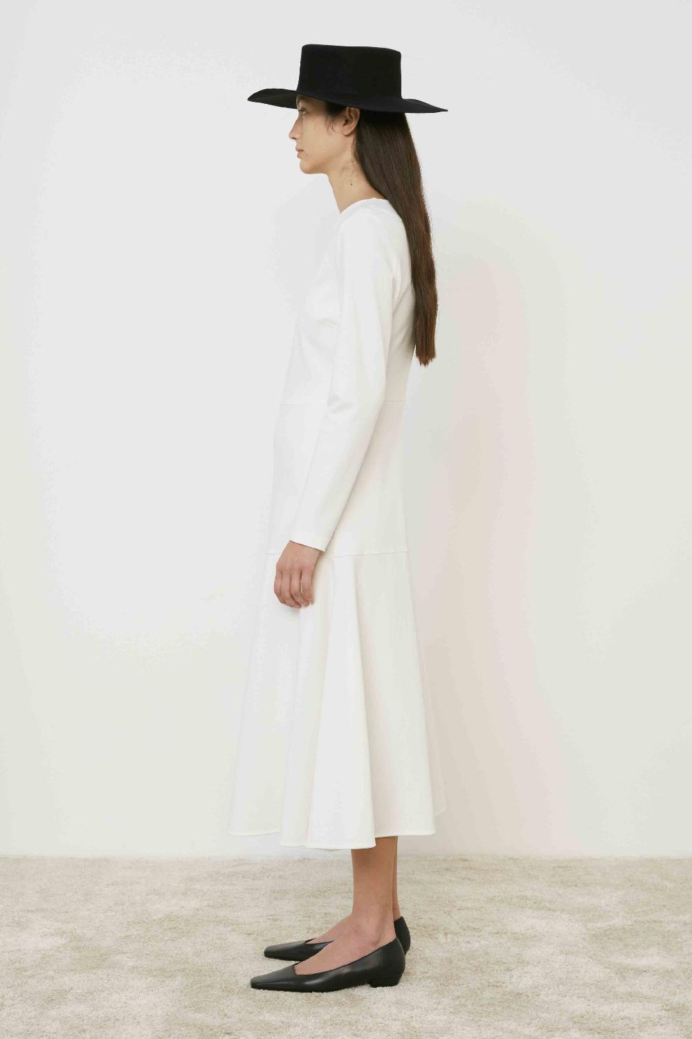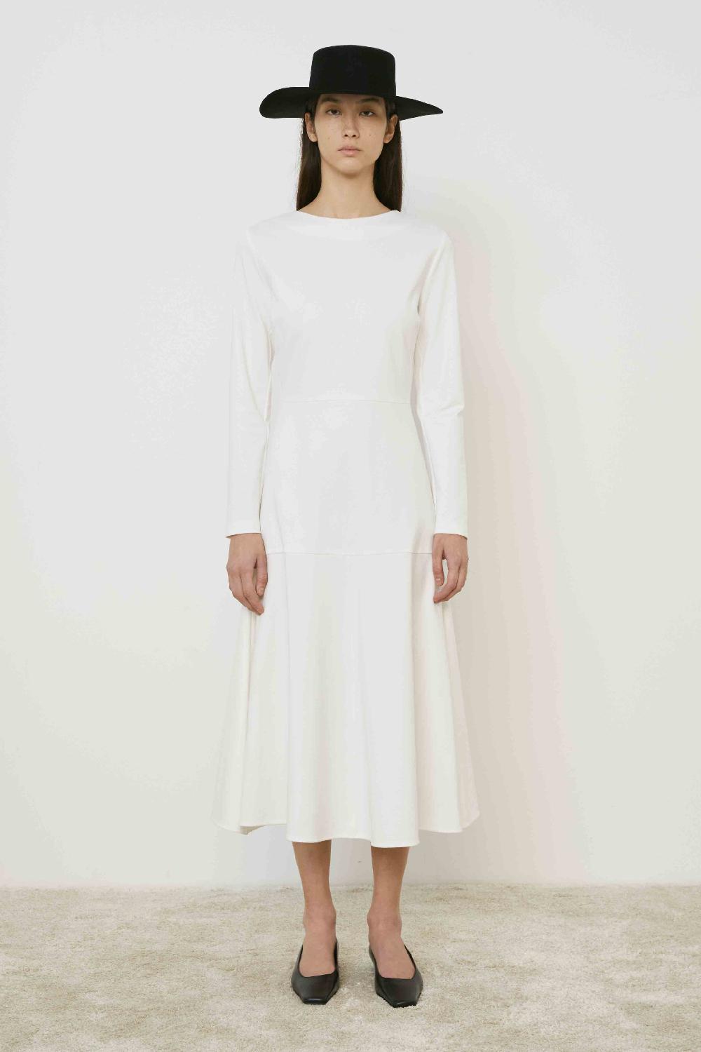 ABITO LUNGO A GIROCOLLO CON GONNA AMPIA A GODET.CHIUSURA POSTERIORE CON ZIP INVISIBILE