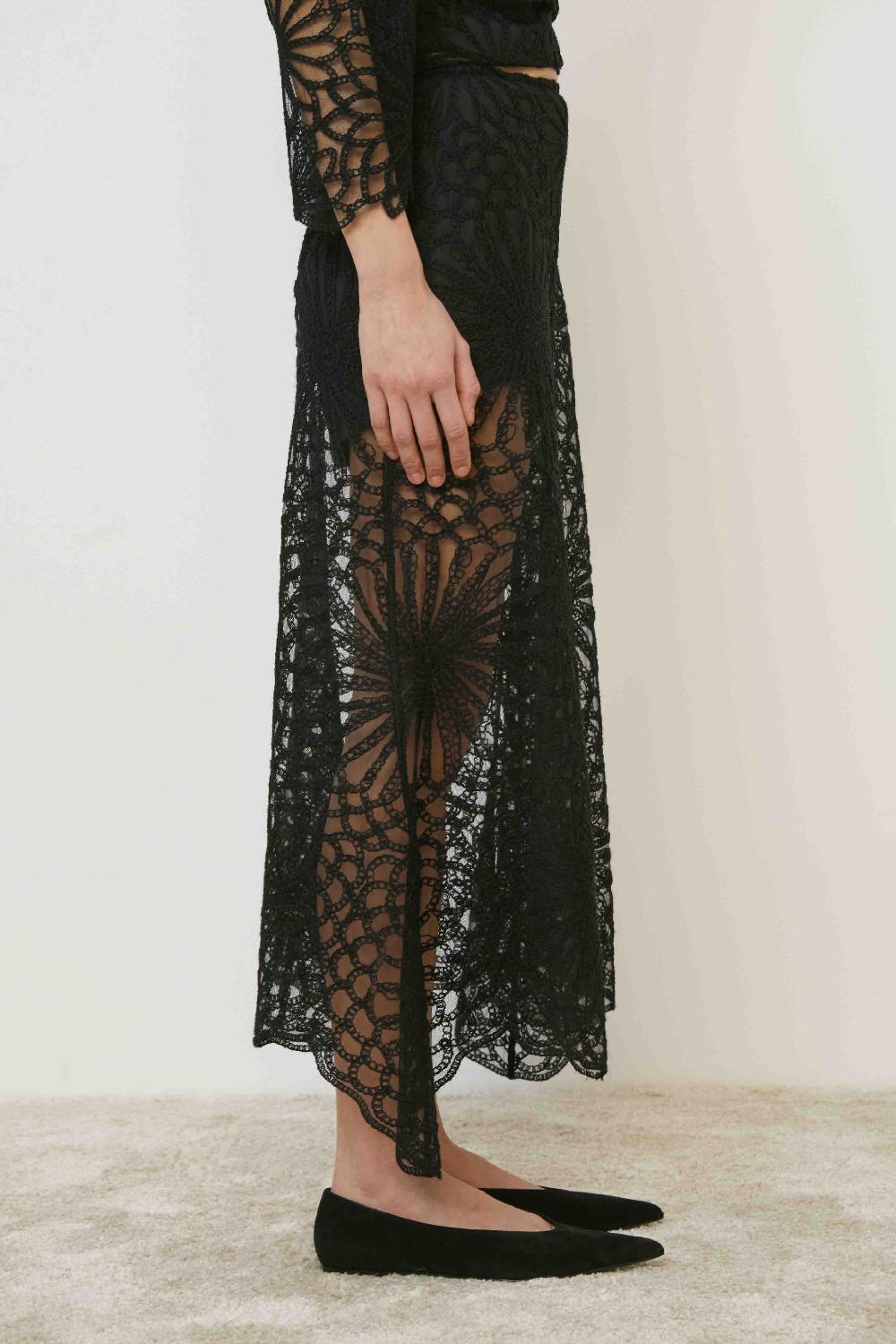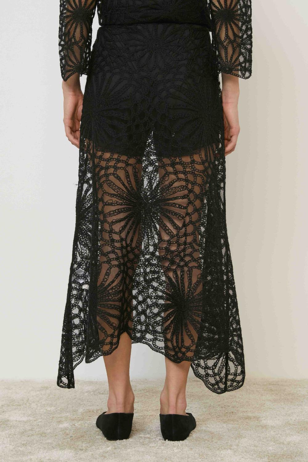 GONNA IN TESSUTO RICAMATO DI LINEA SVASATA CON ORLO SMERLATO E PANTALONCINO ABBINATO