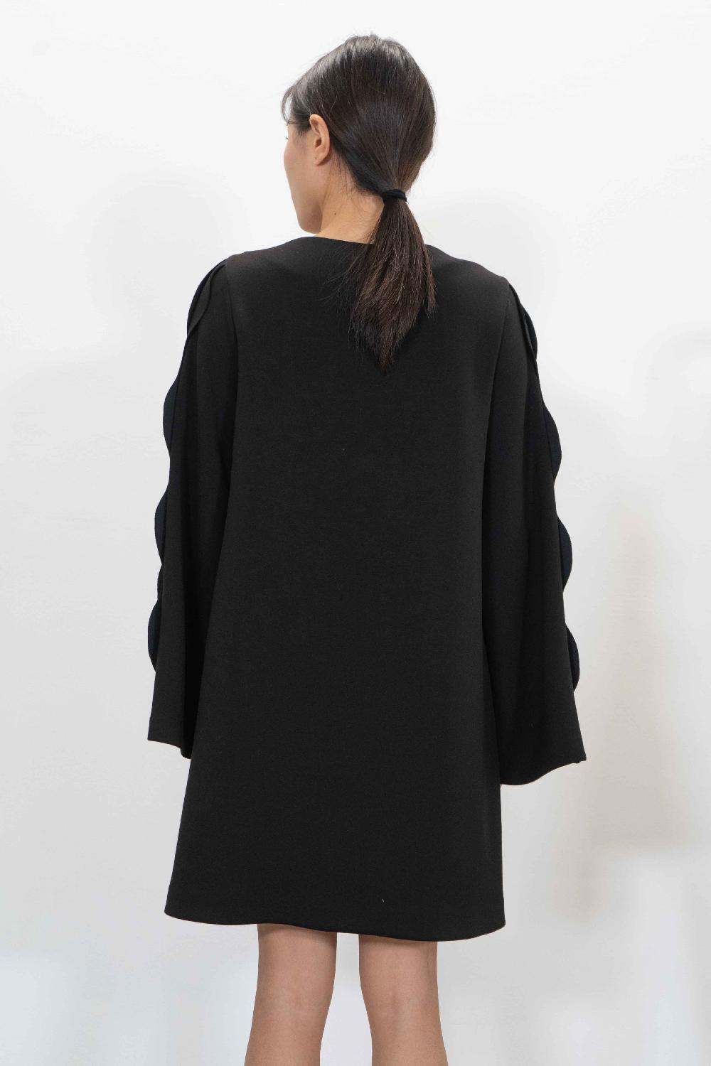 ABITO CON SCOLLO A BARCHETTA E MOTIVO ONDE SULLE MANICHE