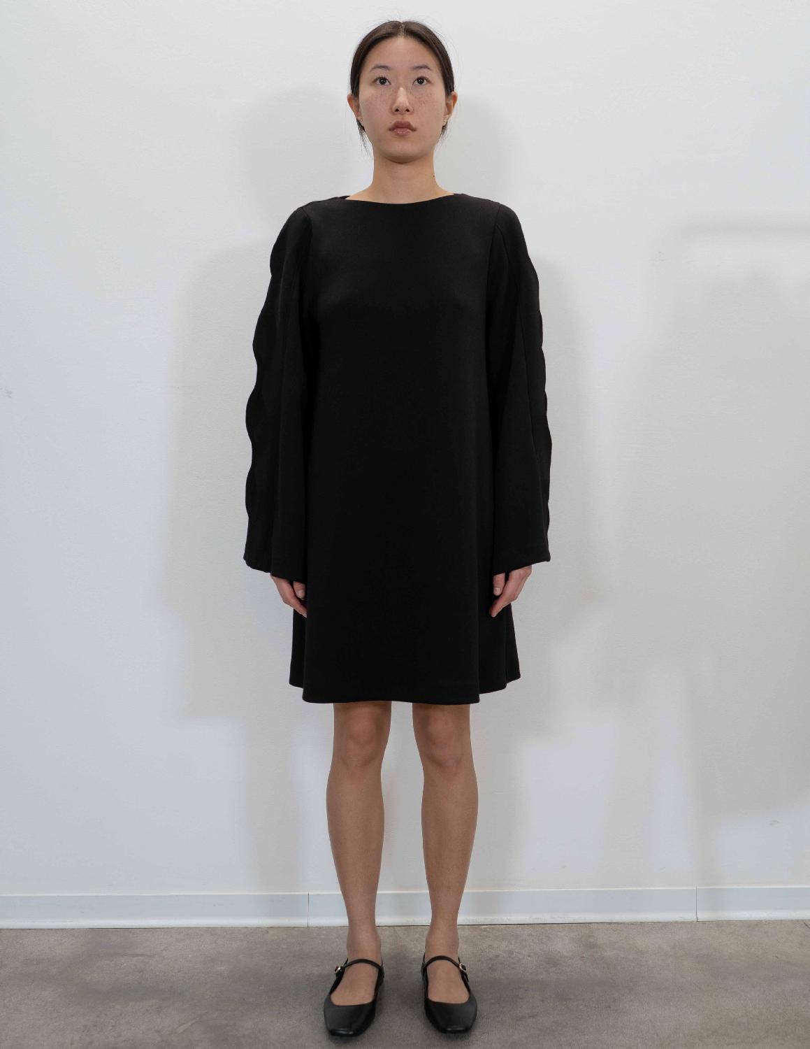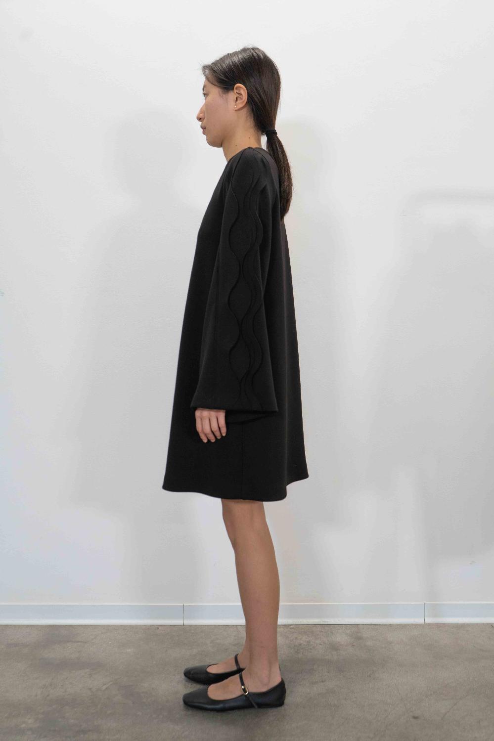 ABITO CORTO CON SCOLLO A BARCHETTA E MANICHE LUNGHE CON MOTIVO ONDE