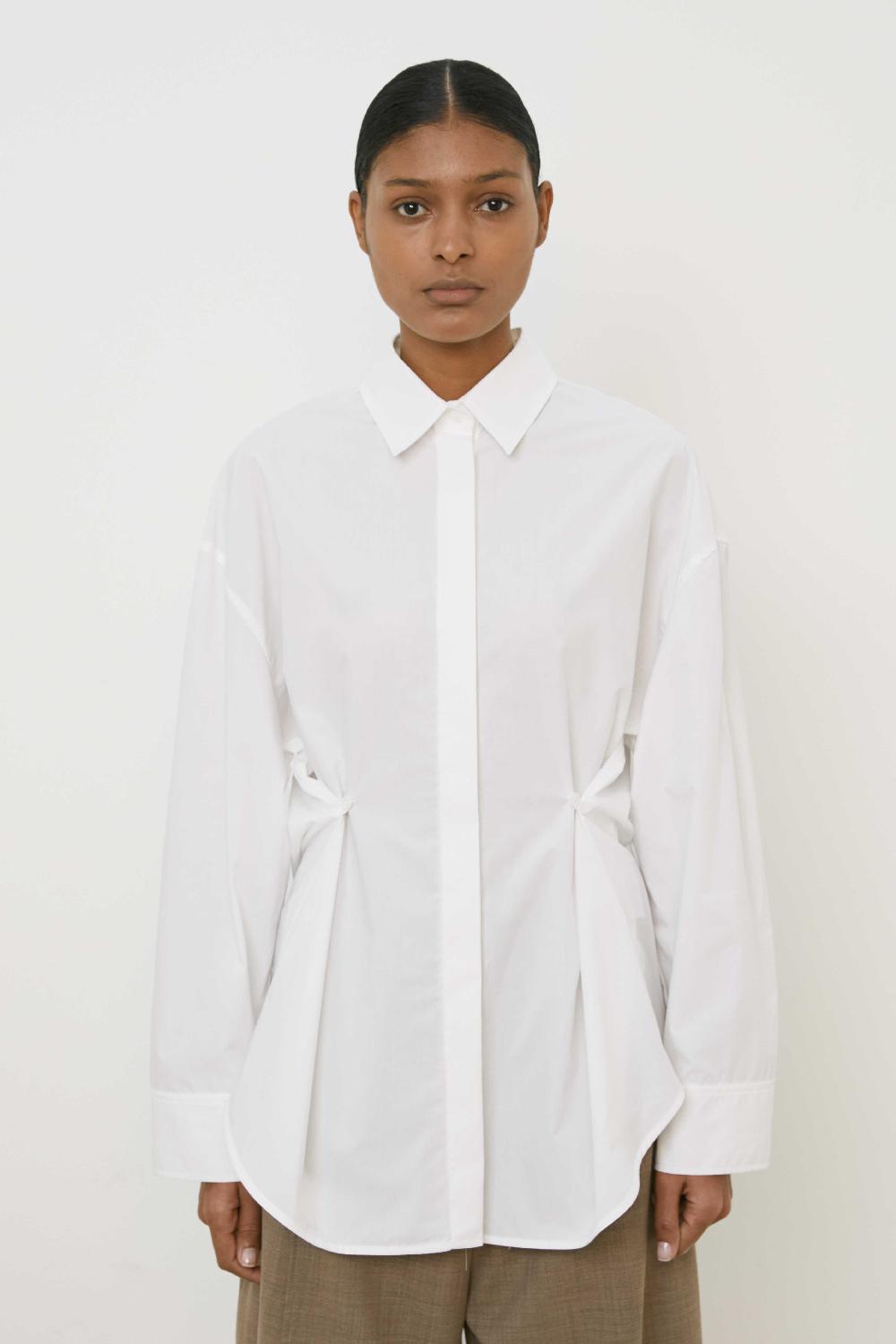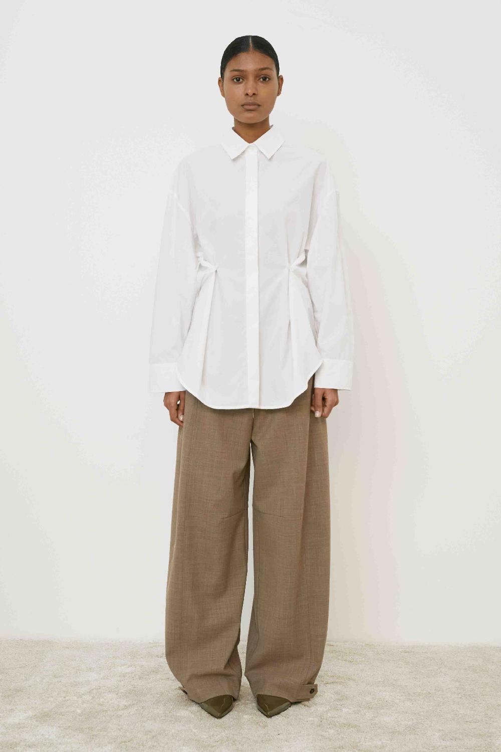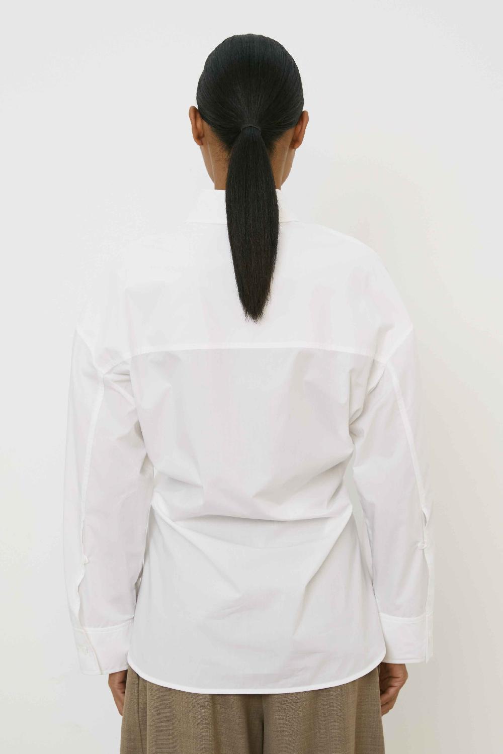 CAMICIA BASICA DAL TAGLIO RELAXED A MANICA LUNGA,CHIUSURA FRONTALE CON BOTTONI E FONDO STONDATO PIU LUNGO SUL DIETRO.BOTTONI SUL PUNTO VITA.